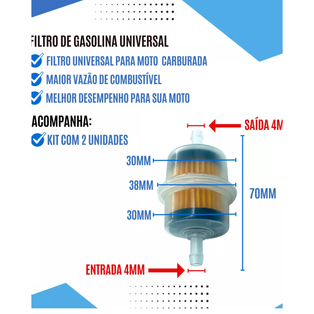 Par De Filtro Combustível Gasolina Universal Motos Carburada