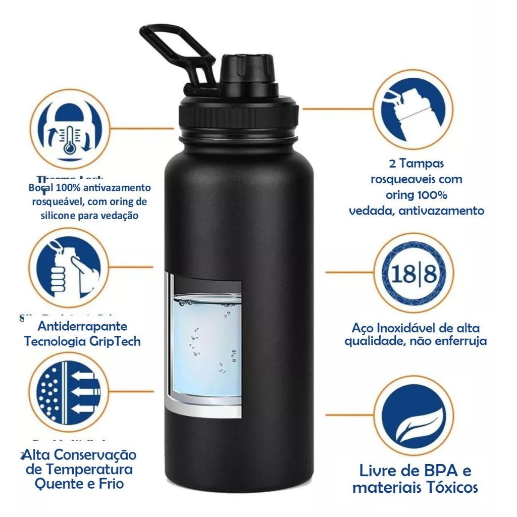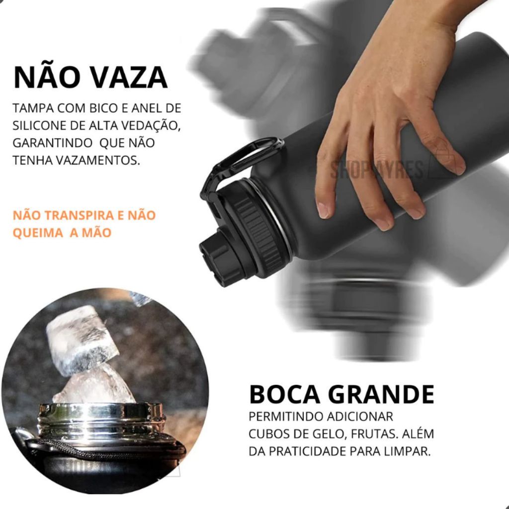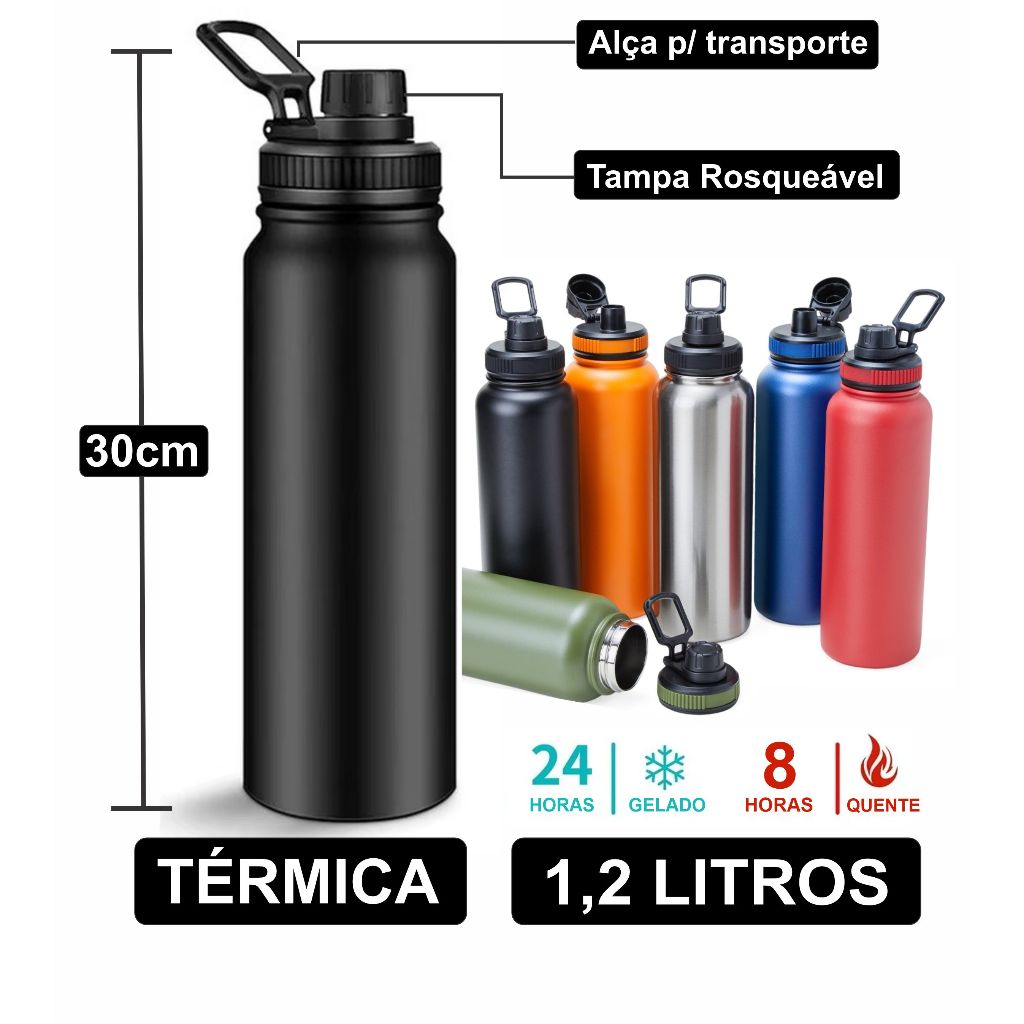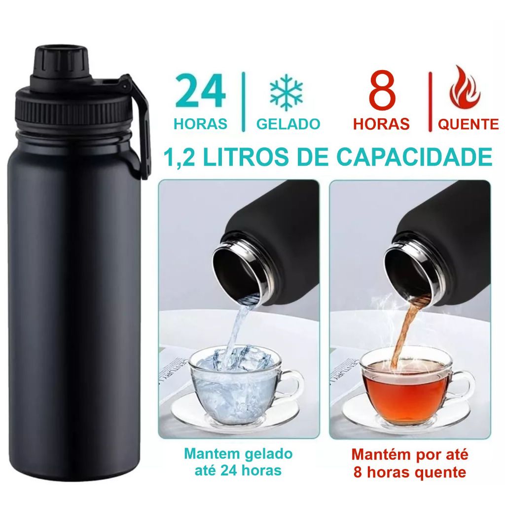 GARRAFA TÉRMICA GRANDE 1,2 LITROS CONSERVA QUENTE 8H E FRIO 12H INOX DUPLA CAMADA AGUA CAFÉ ACADEMIA TRABALHO