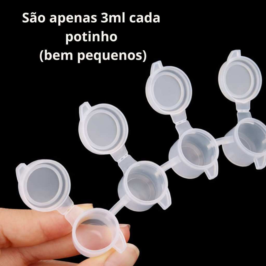 15 Tira de Potes vazios Tinta 3ml com Tampa – Recipientes Interligados Transparente lembrancinha artesanato