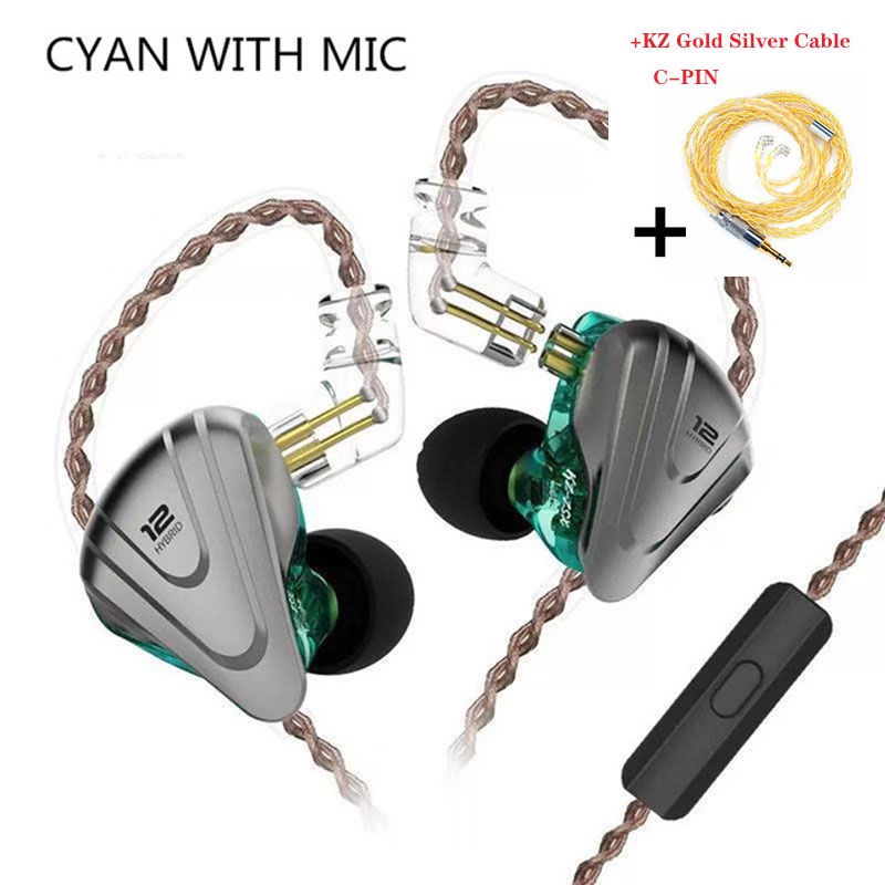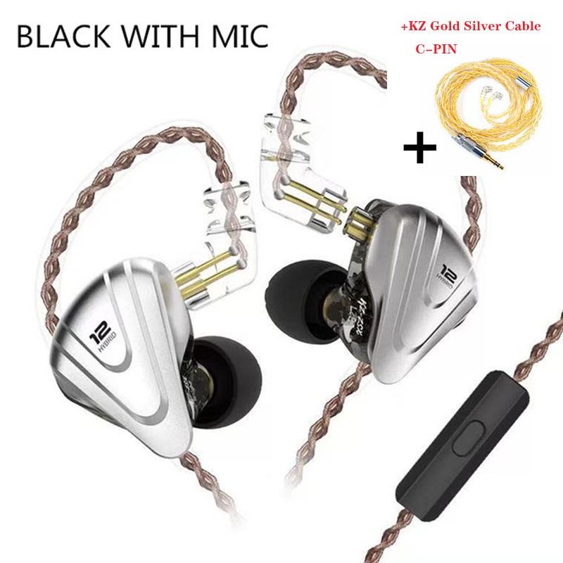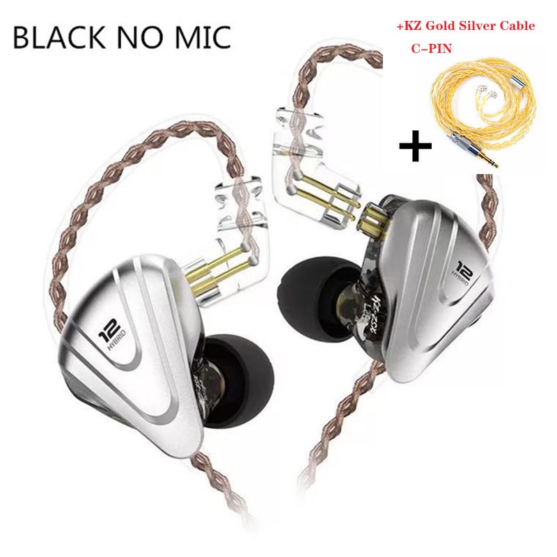 Fone de ouvido de metal, modelo esportivo - Kz Zsx 1dd + 5ba 12 Unidade Híbrida Intra-Auricular - Kz Zs10 Pro As12 As16 Zsn Pro C12 Dm7 As06 V90