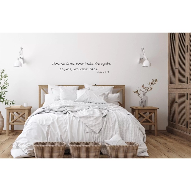 Versículo bíblico Mateus 6:13 personalizado em MDF para decoração, aplique de parede em preto fosco.