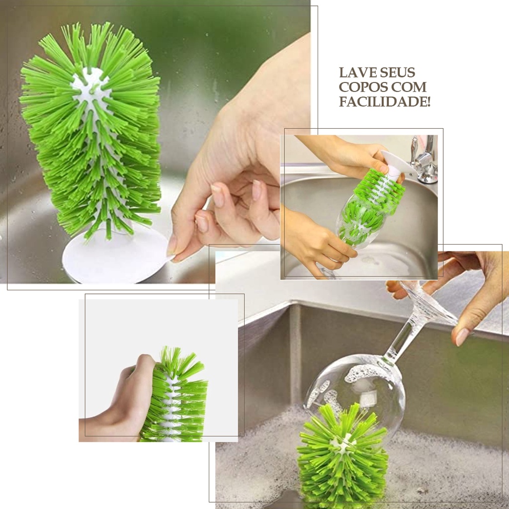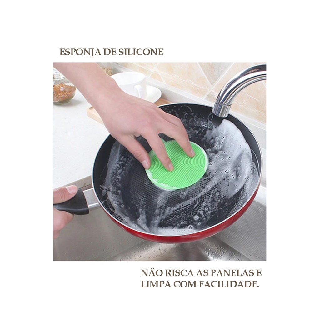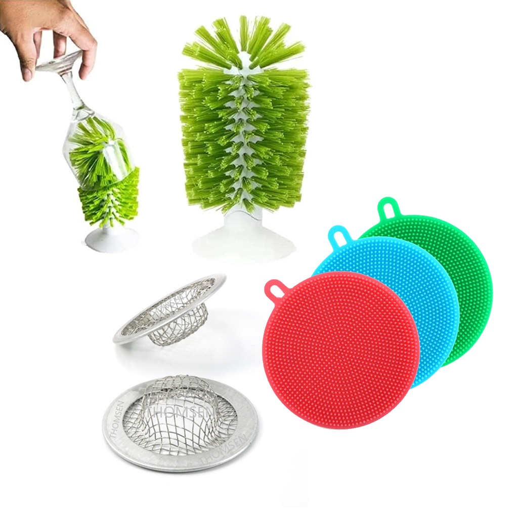 Kit 01 Escova Lava Copos + 01 Bucha Lavar Pratos em SIlicone + 01 Ralo de Pia INOX
