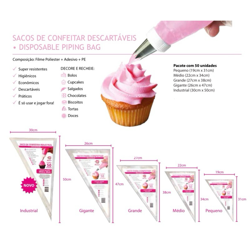 Saco de Confeitar (50 unidades) Descartável Mago Manga Bolo Alimentício Decoração