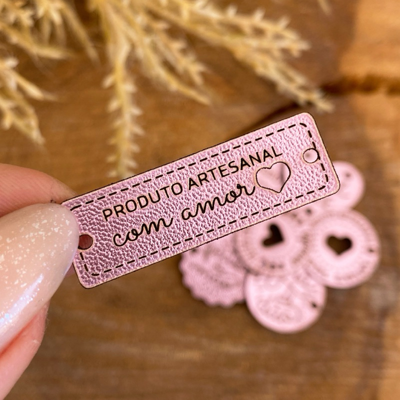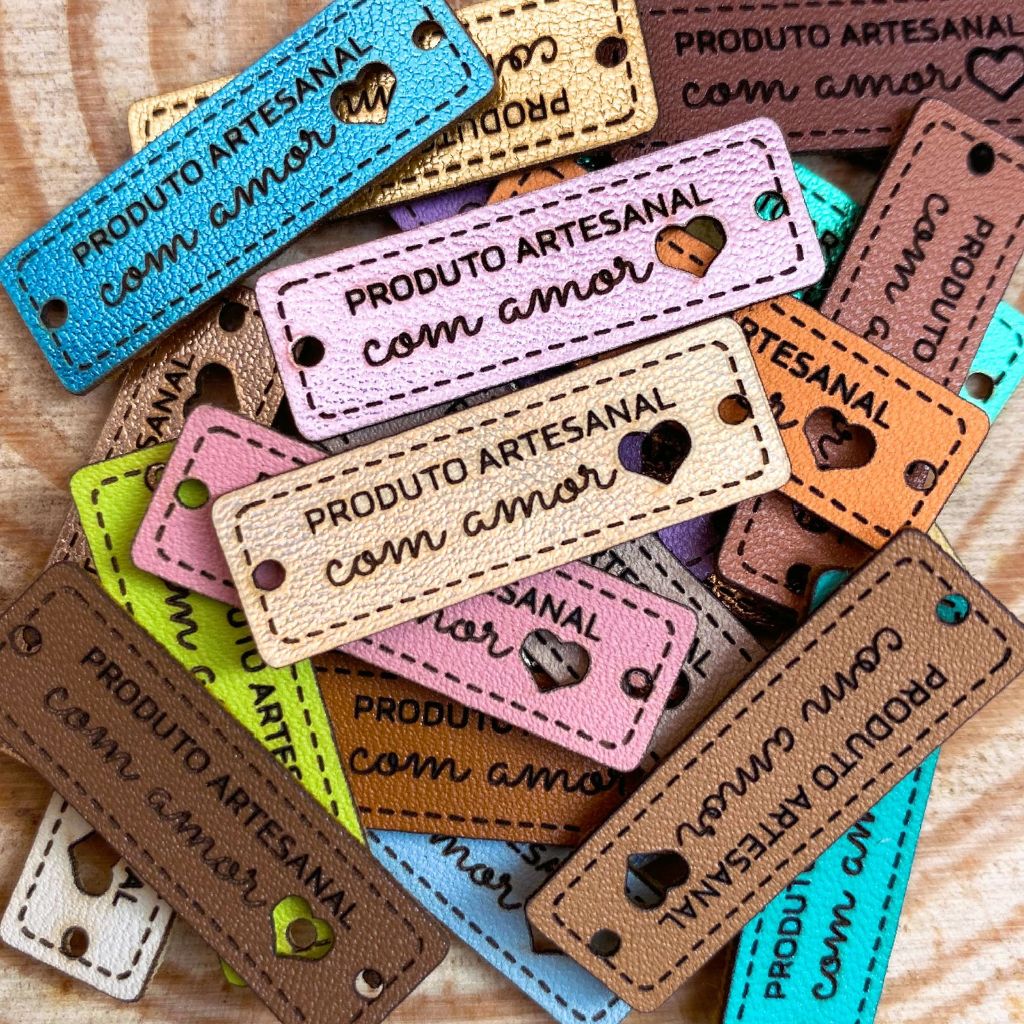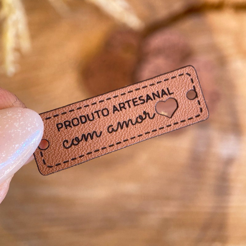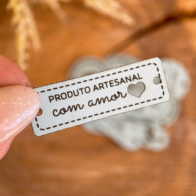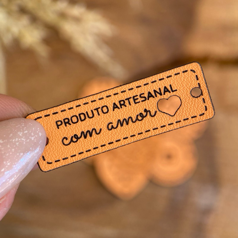 PA02: Etiquetas Sintéticas "Produto Artesanal" – Tags em couro ecológico, sintético PU FRASE PRONTA