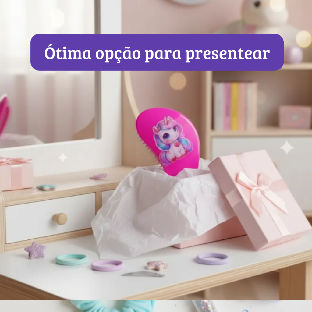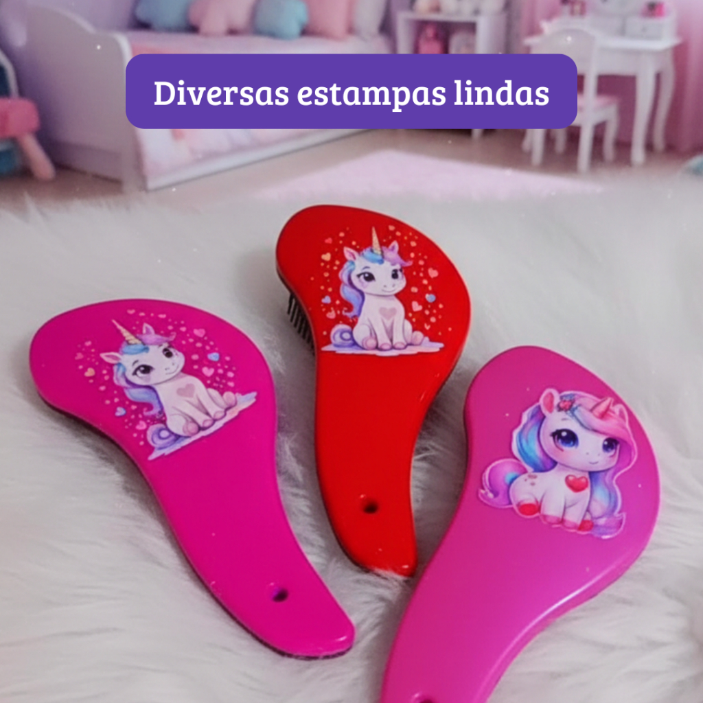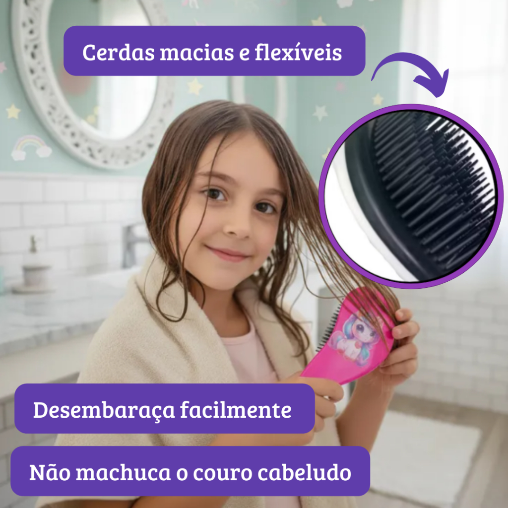 Escova De Cabelo Infantil Unicórnio Colorida Desembaraça Sem Puxar