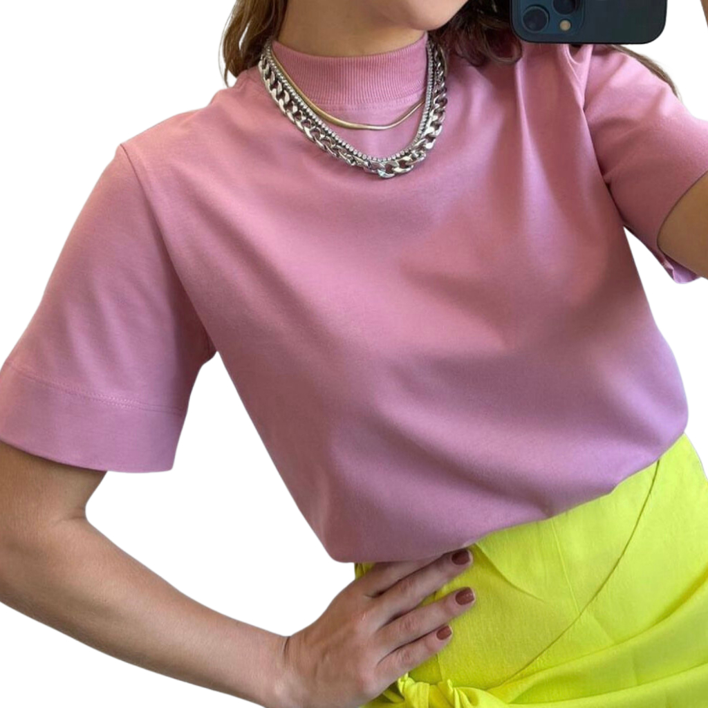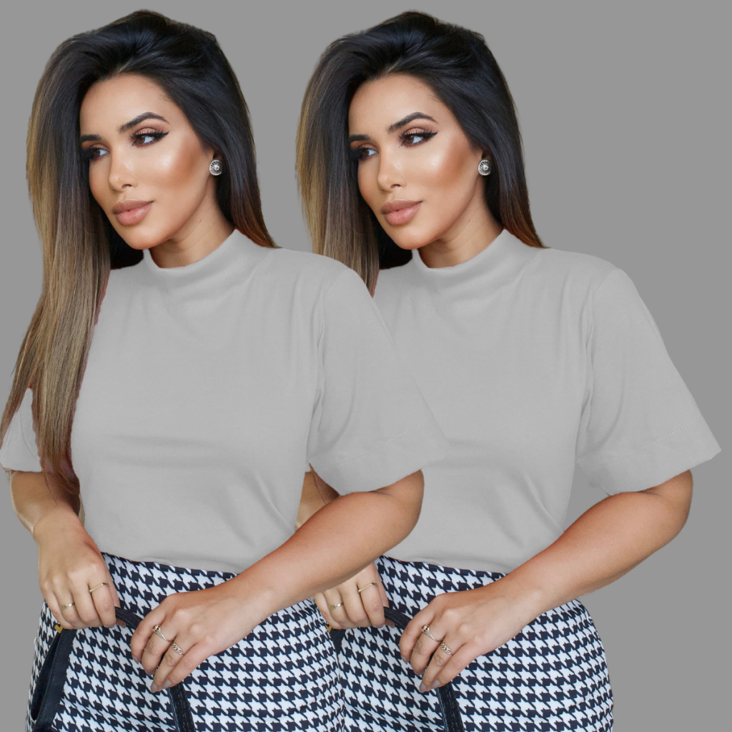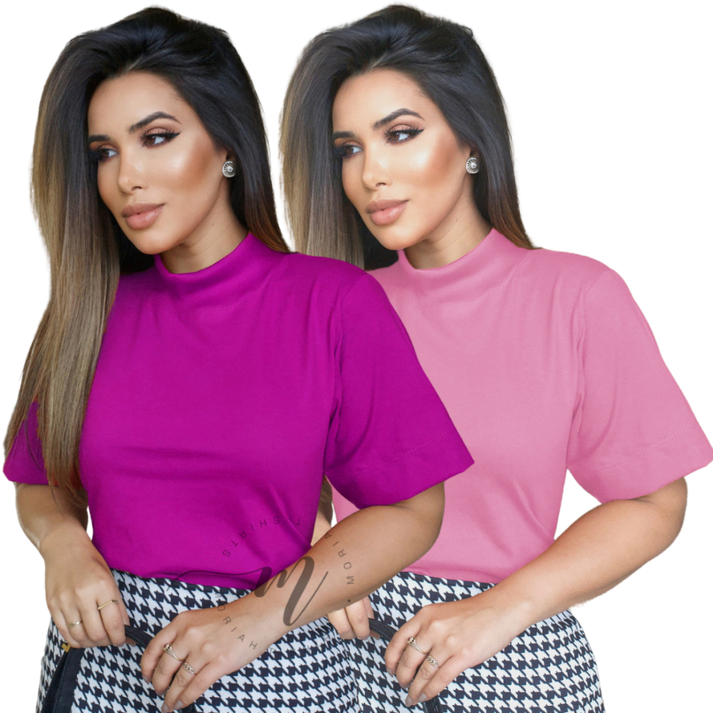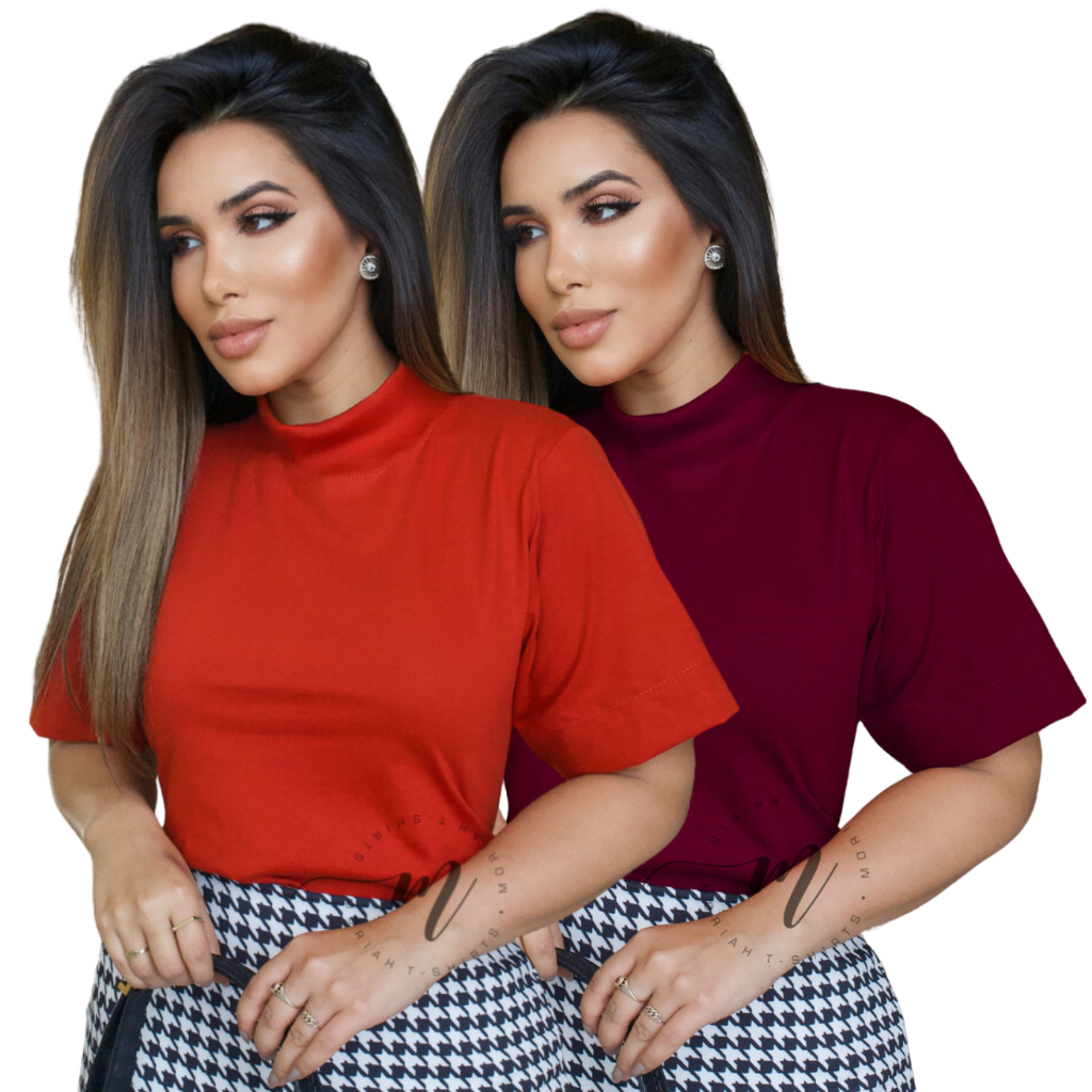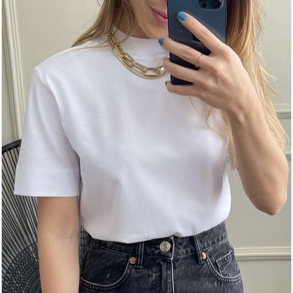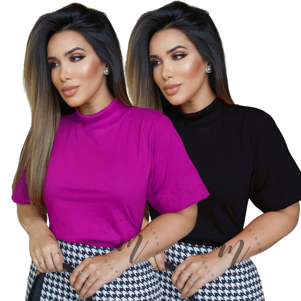 Tshirt Feminina Gola Alta Blusinha Gola Alta Moda Blogueira Blusa Camiseta Estilosa Algodão Blusas Feminina Basica