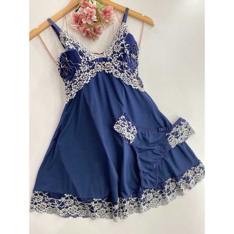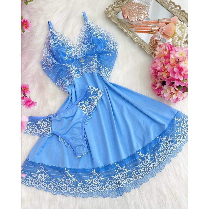 camisola de renda bicolor acompanha fio camisola e calcinha linha noite (camisola sem bojo)