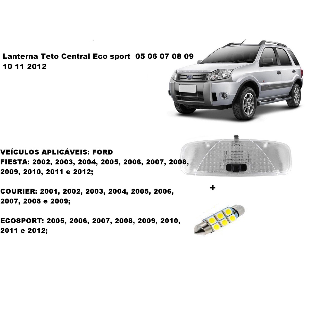Lanterna Luz de Teto Fiesta 2001 2004 2005 2006 22010 2013 2014 Ecosport 2003 Até 2012 Courier 97 Até 2013 LED 39 1149