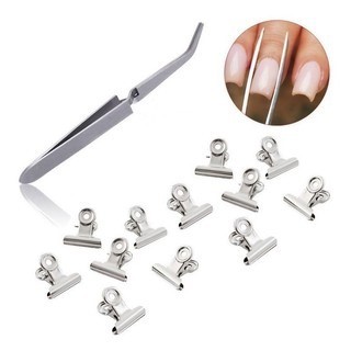 Kit 10 Presilhas Para Unhas + 1 Pinça Unha Especial para Curvatura C - Unhas Esculpidas Manicure