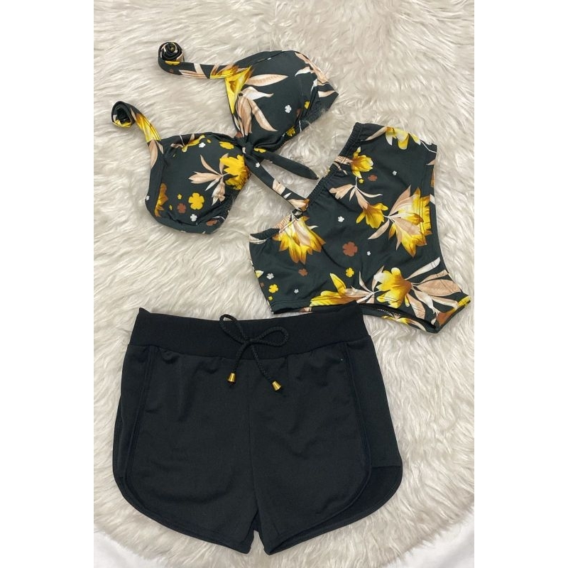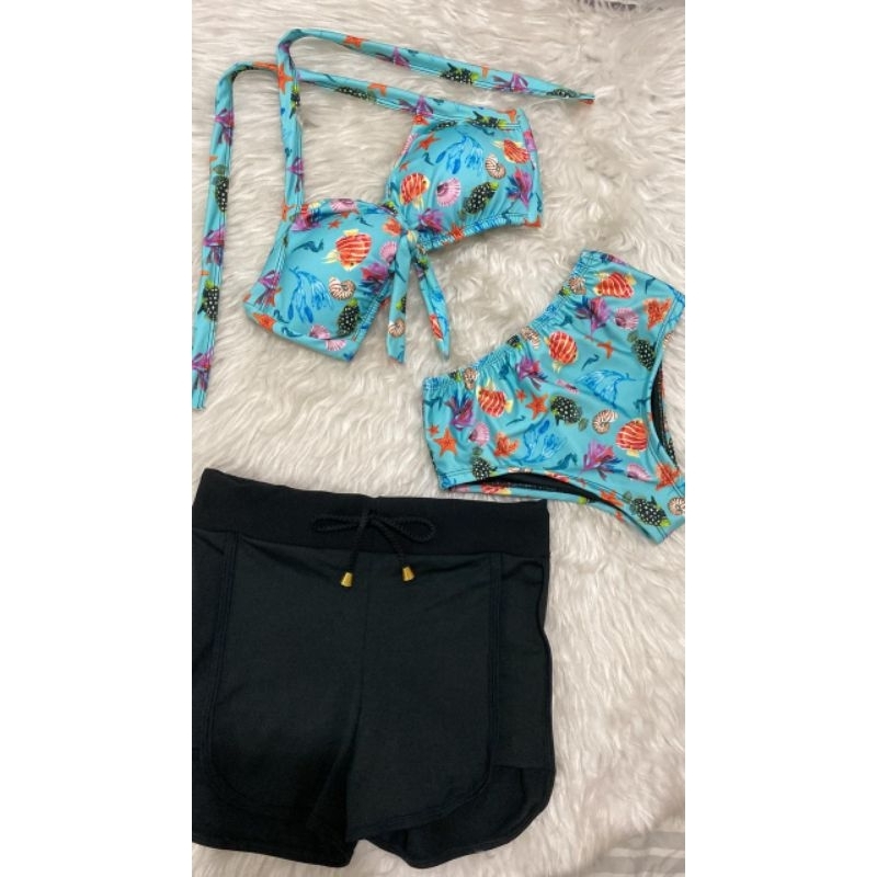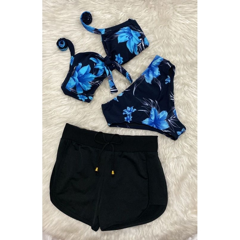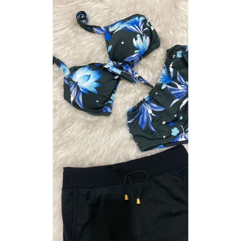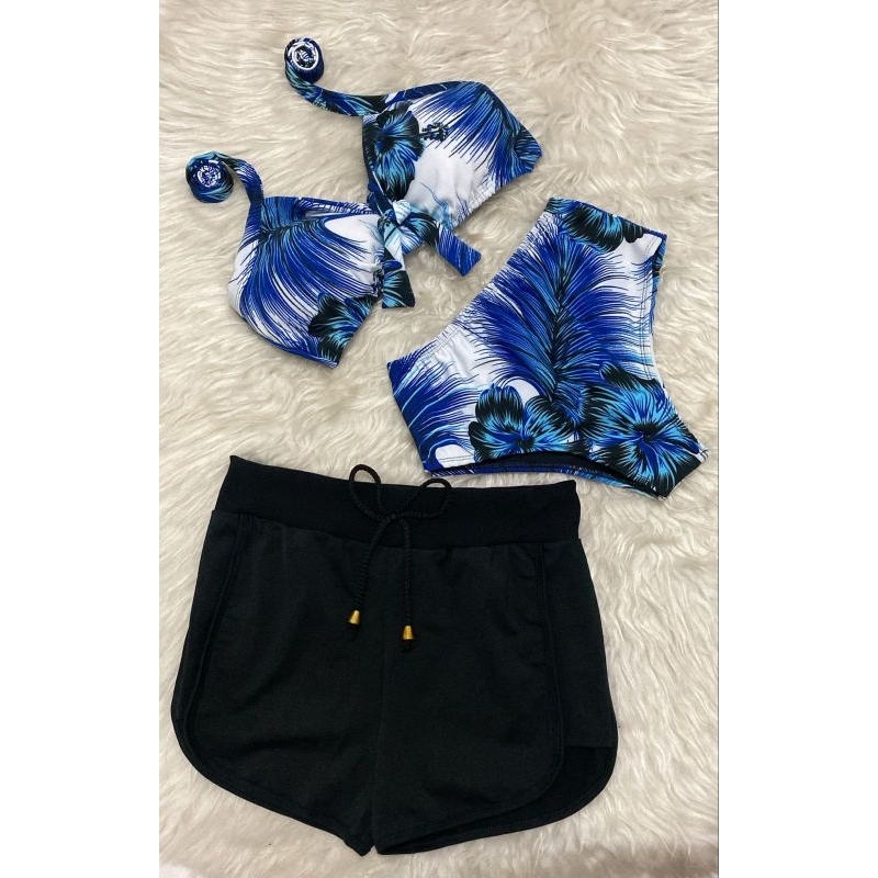 CONJUNTO 3 PEÇAS (BIQUINI BOJO LAÇO + SHORT PRETO LISO) M AO G2 (36 AO 56)