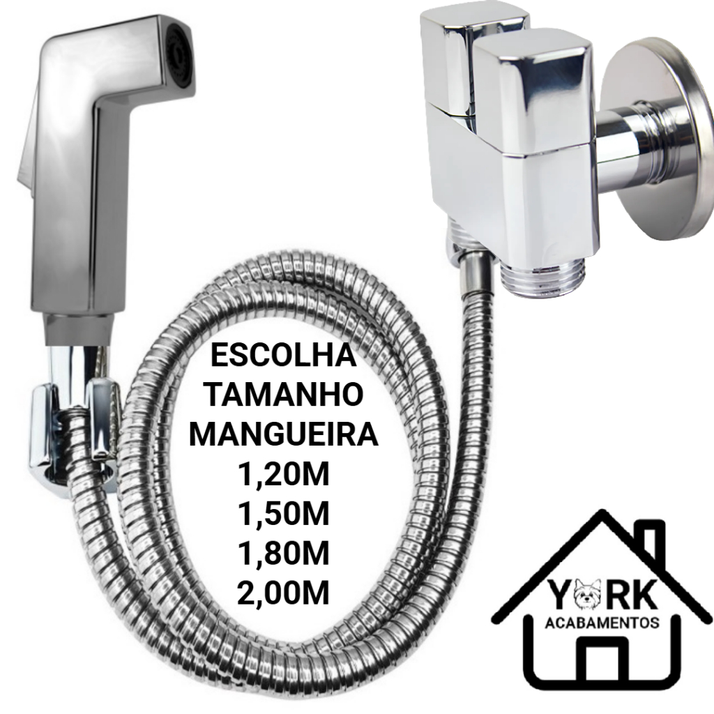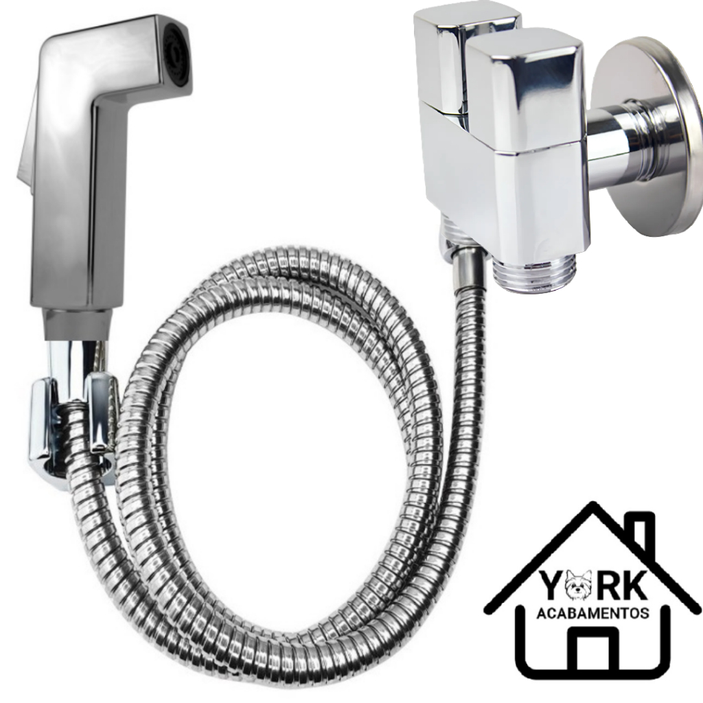 Ducha Higienica Mangueira Flexível Aço Inox Gatilho Quadrado Cromado Registro Dupla Saida de Água