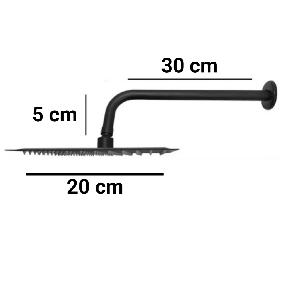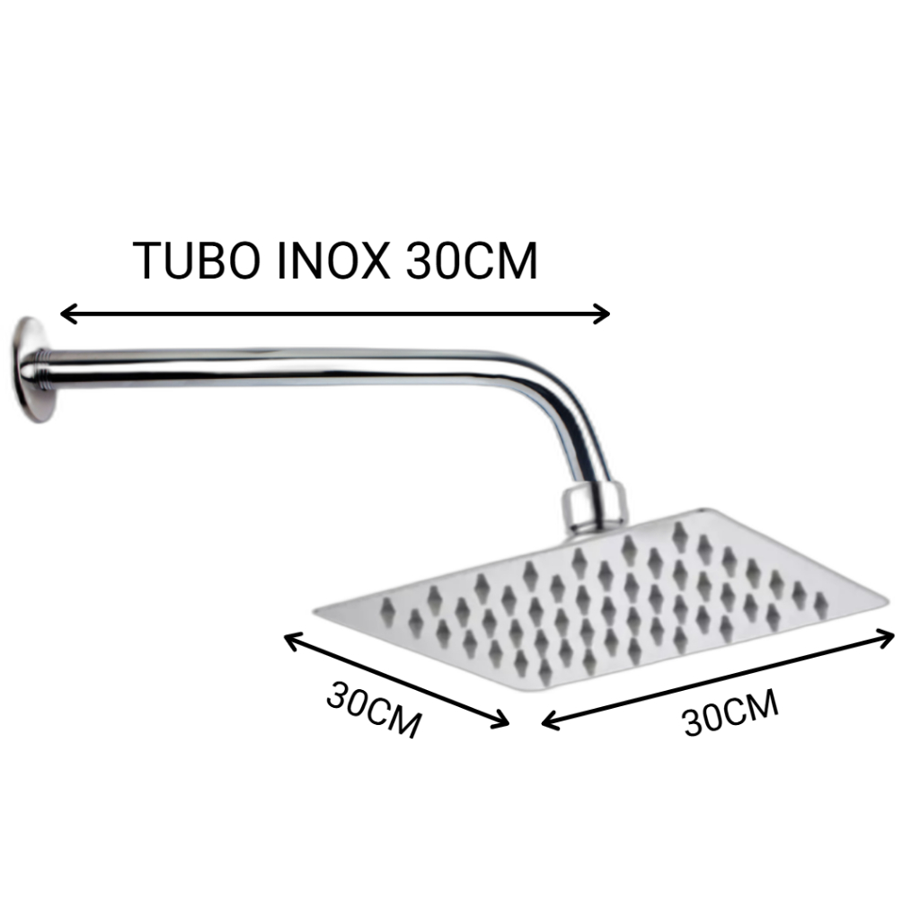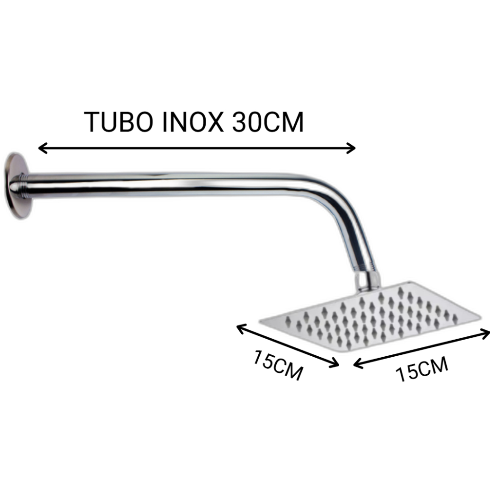 Chuveiro Ducha Quadrada Inox 304 Cromado 15 X 15cm 20 X 20cm ou 30 x 30cm com Braço Tubo INOX 30 cm