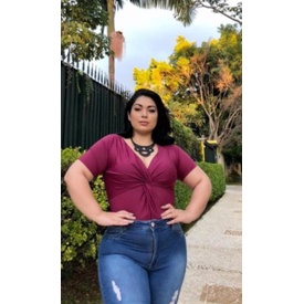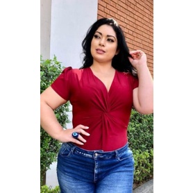 Body Nozinho Bory Plus Size Afina Cintura Com Manguinha G/GG/ G1/G2/ G3