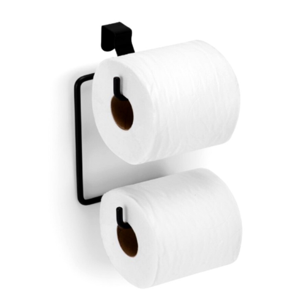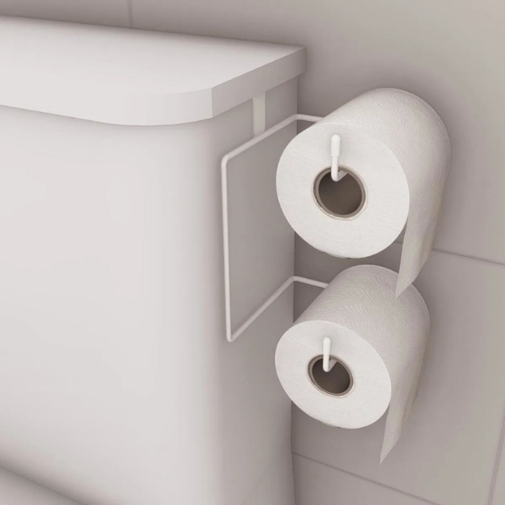 Suporte Porta Papel Higienico Duplo Aramado Para Caixa Acoplada Cromado Aço Preto Branco