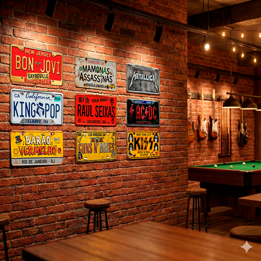 Placa Decorativa MDF 30x15cm Estilo Placa Americana - Rock e Cultura Pop Retro Vintage