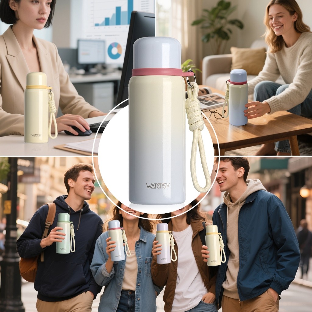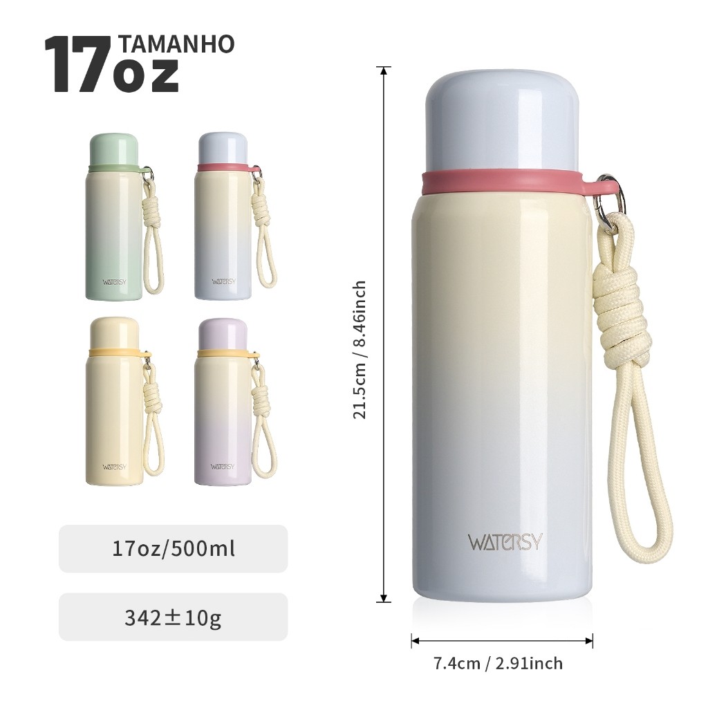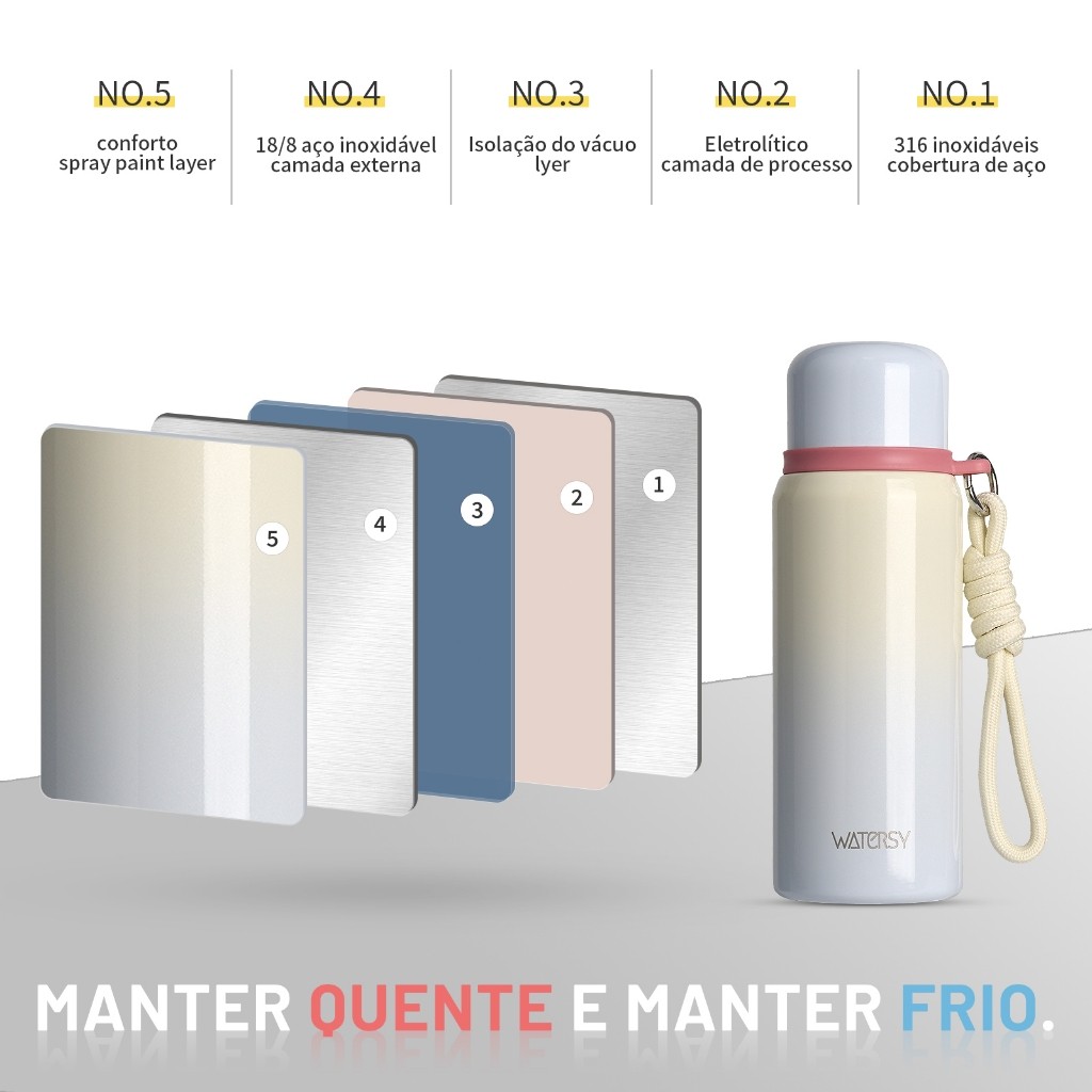WATERSY-Aço inoxidável 304,Garrafa Térmica liso espacial Quente e Frio Com Isolamento Térmico 500ml