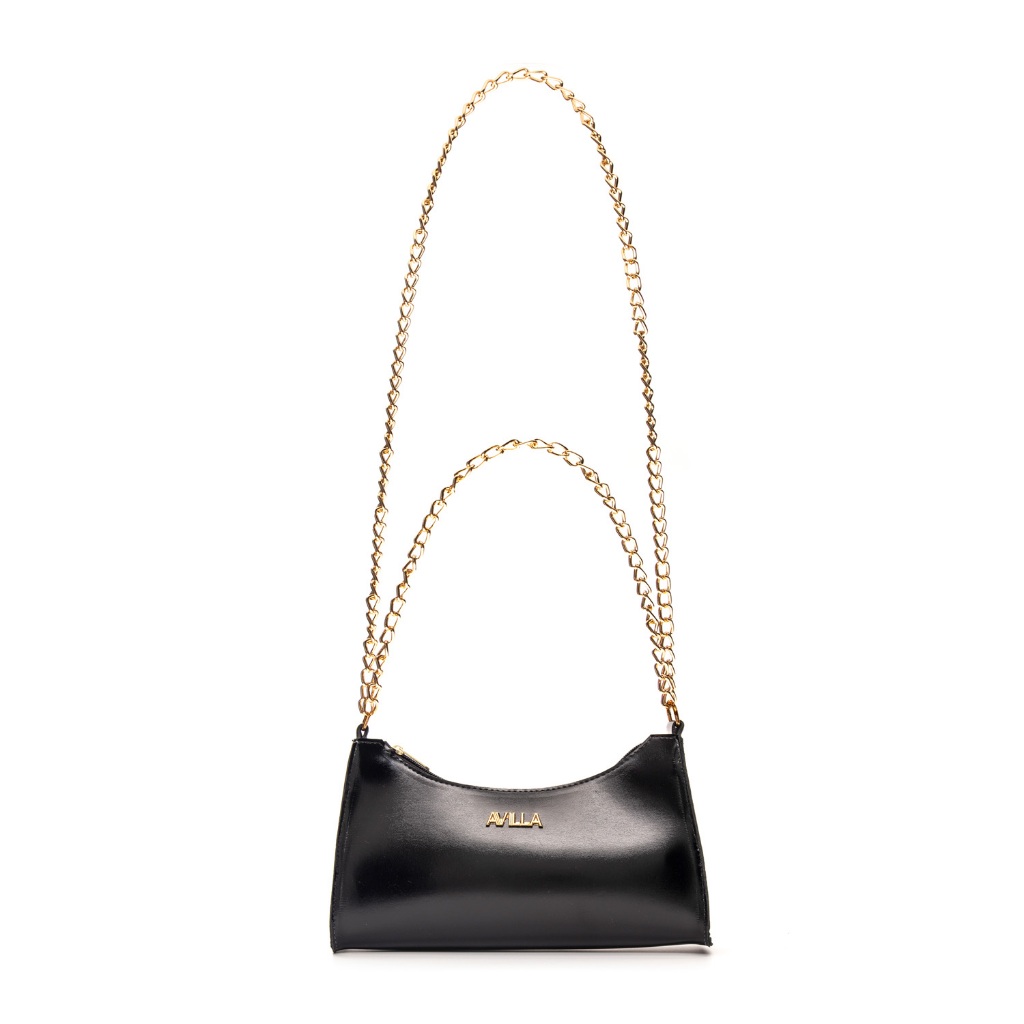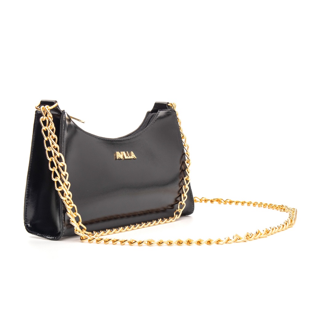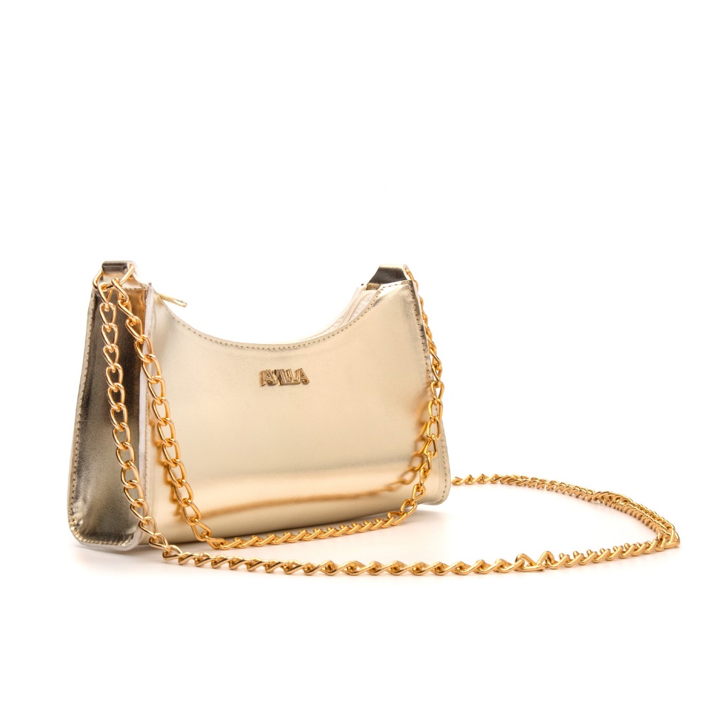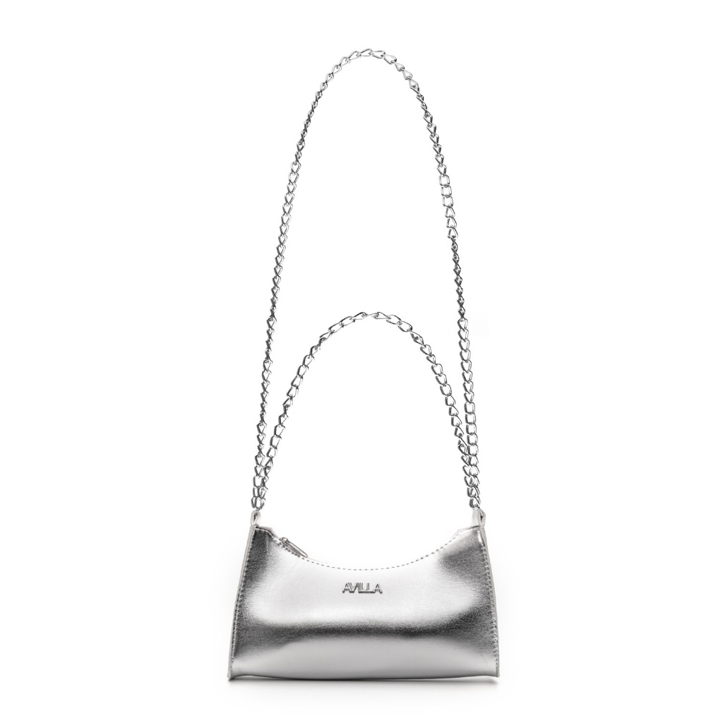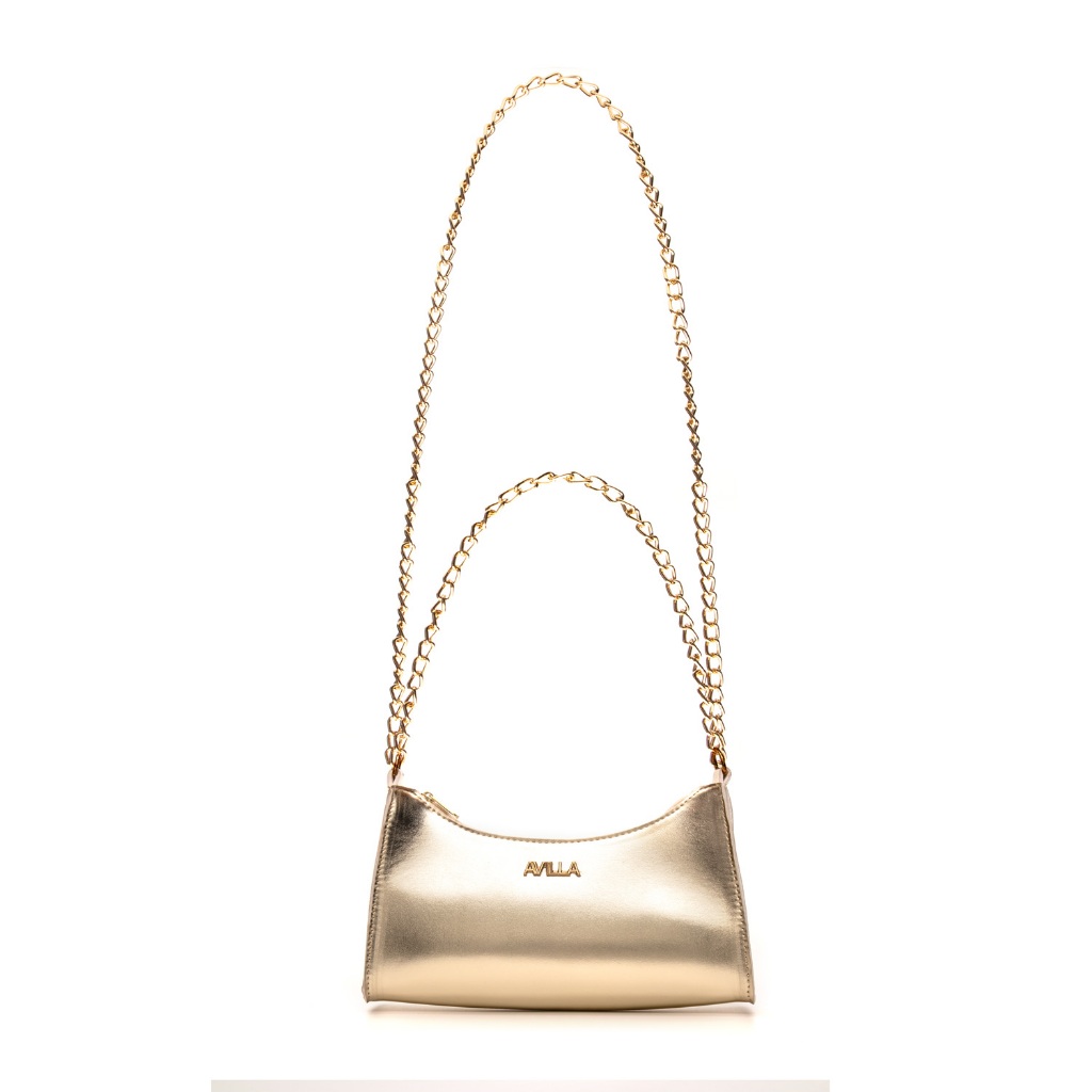 Bolsa Feminina Baguete Metalizada Corrente Dupla Duas Alças Transversal de Lado Ombro