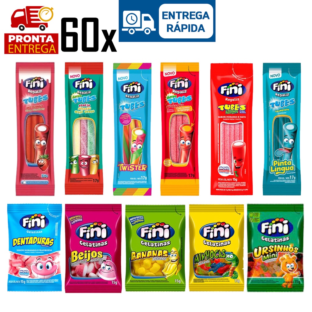 60 Pacotes Bala Fini Sabores Variados