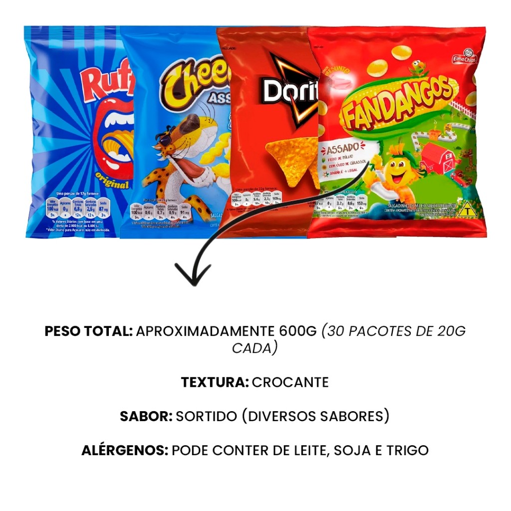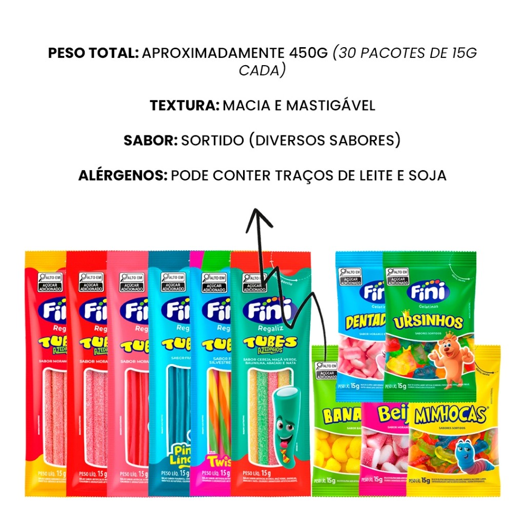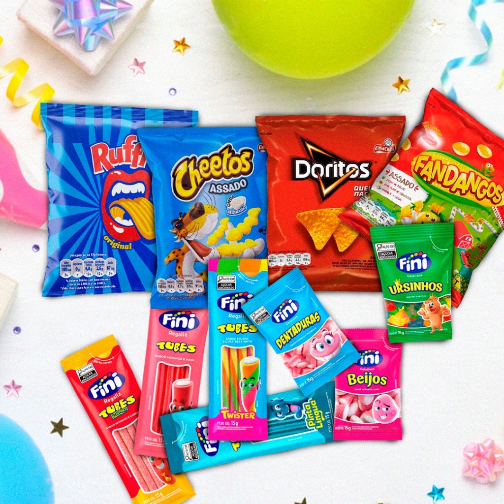 Kit 60 Salgadinhos Elma Chips + 60 Pacotes Bala Fini