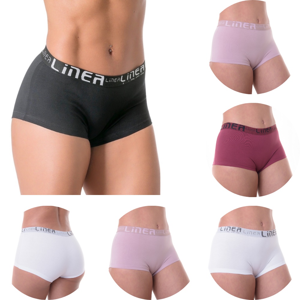 Kit 6 Calcinhas Algodão Boxer Feminina Cós Largo Luxo