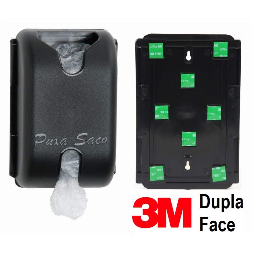 Puxa Saco Preto Dispenser Sacolas Plásticas Fixação Adesivo 3M -