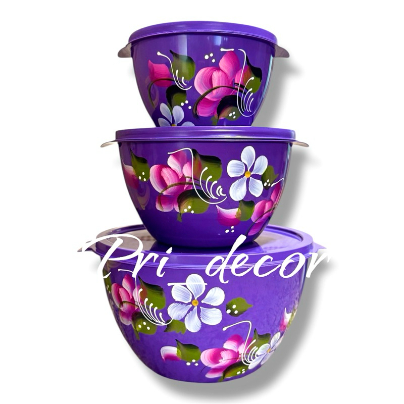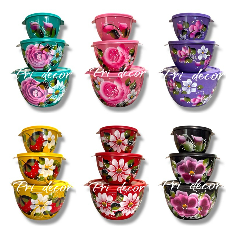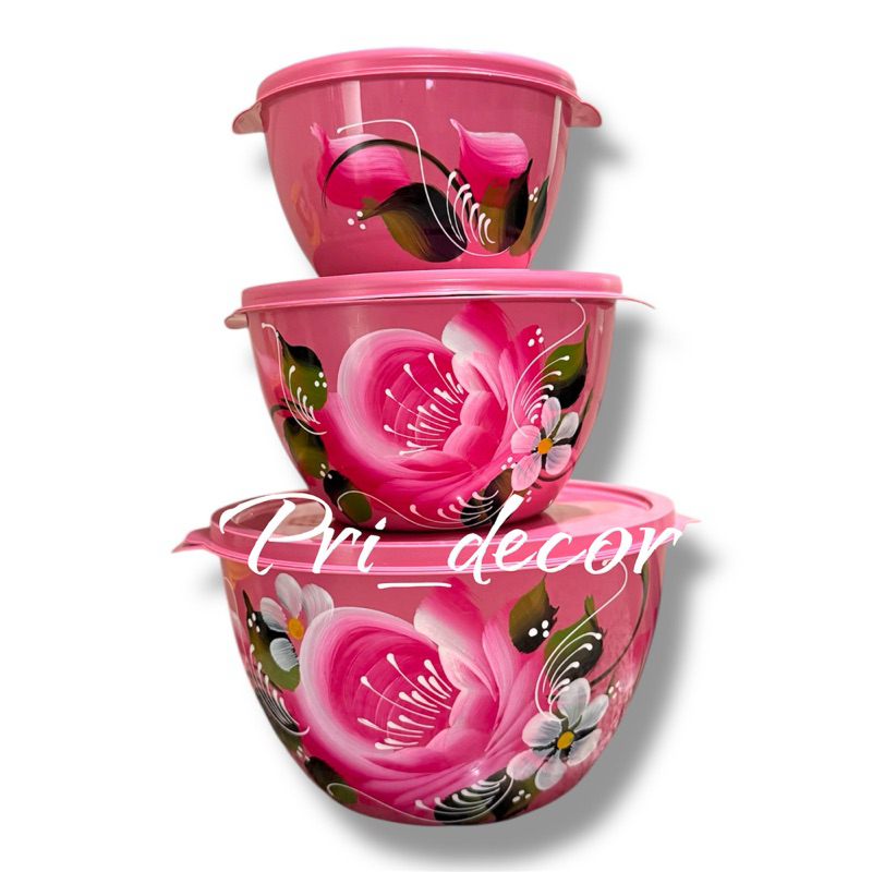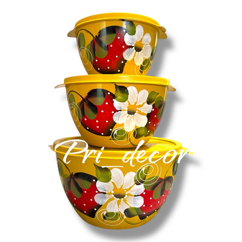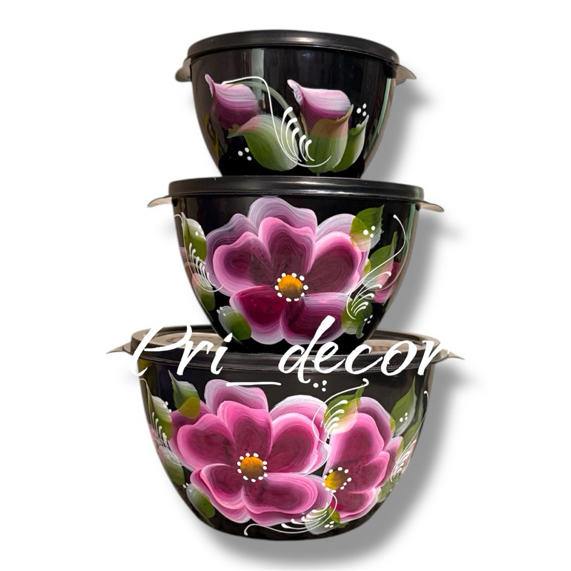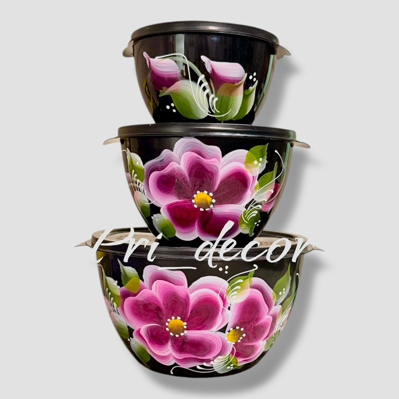 Jogo de vasilhas 3 peças com tampa decorado,vasilhas decorado a mão
