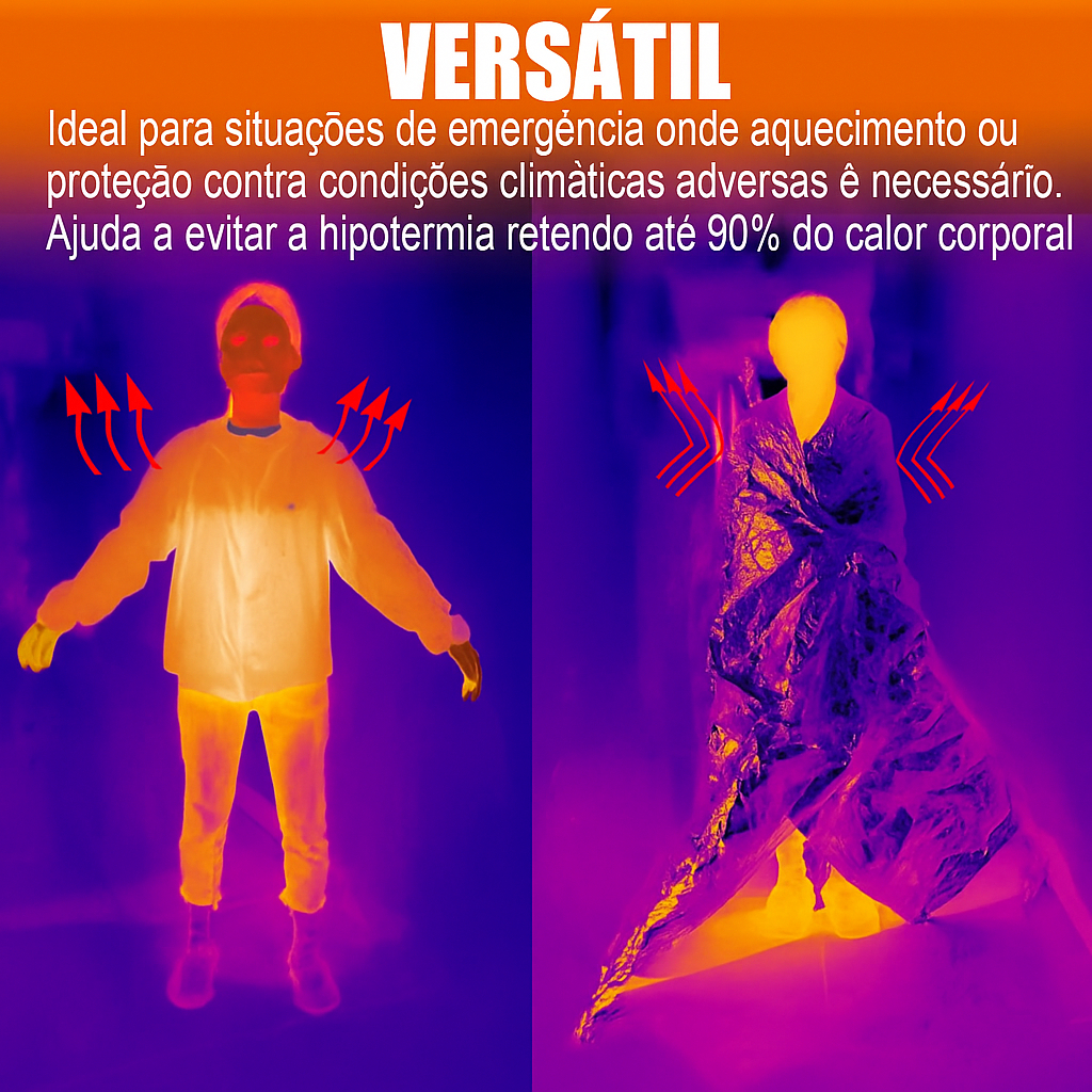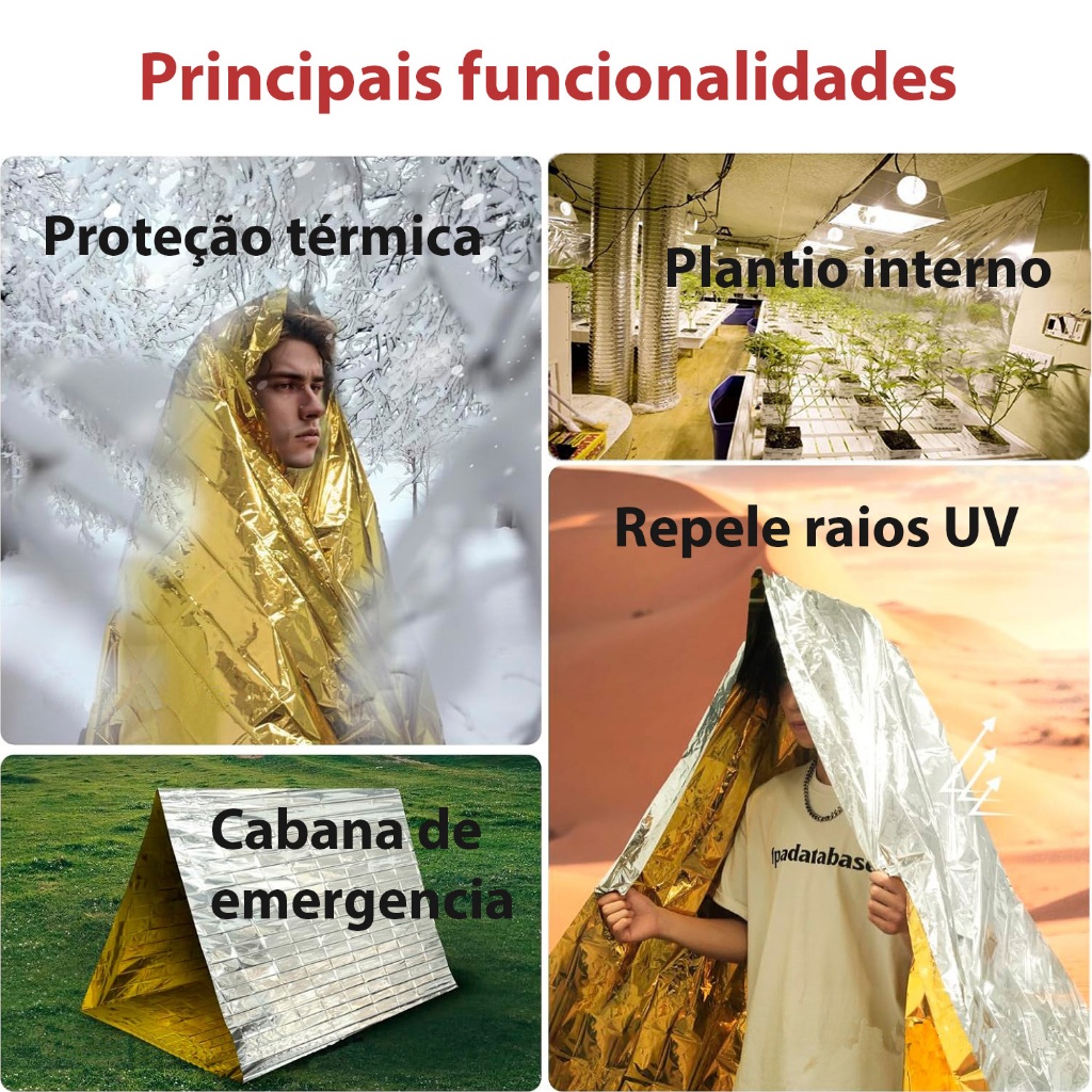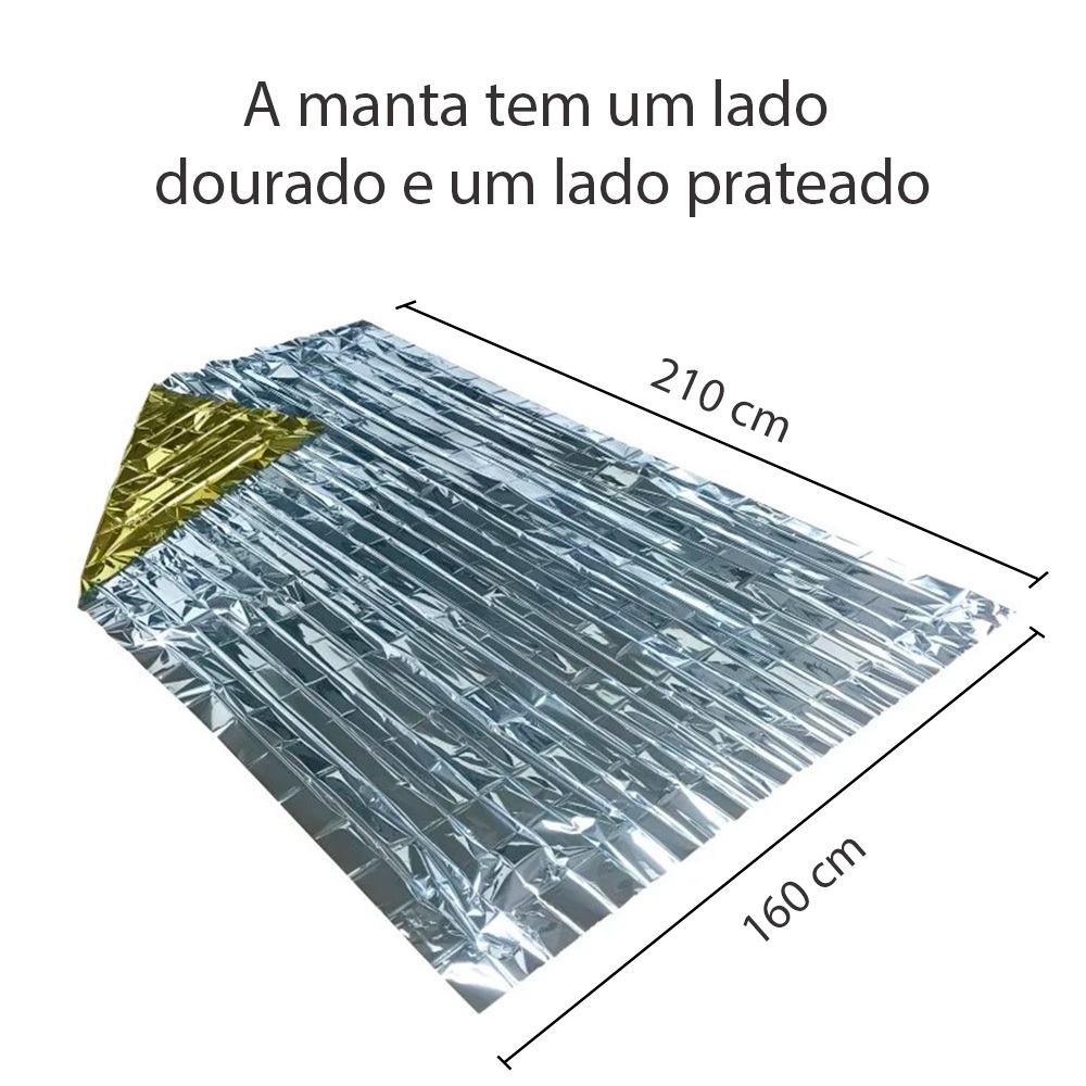 Kit com 1, 3 ou 10 unidades - Cobertor Manta Térmica Corporal Aluminizada Para Resgate, Emergência e Camping