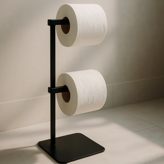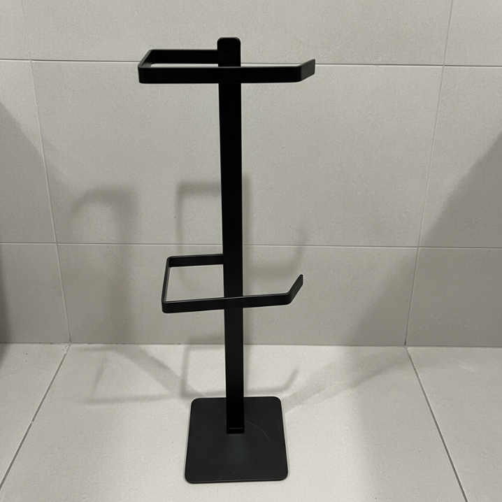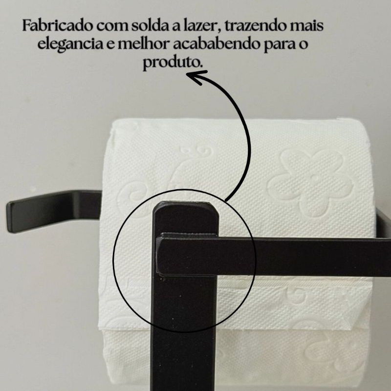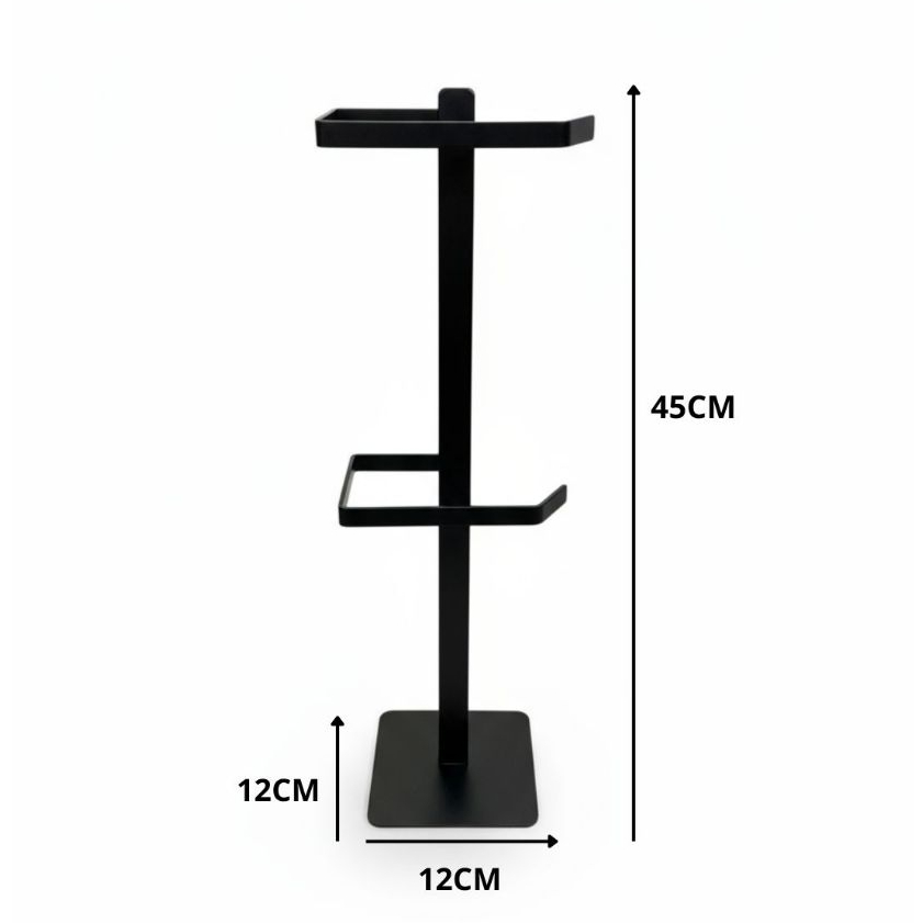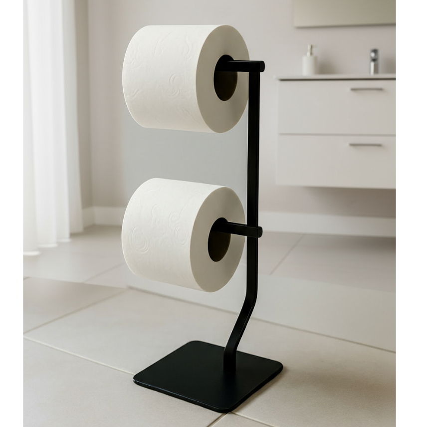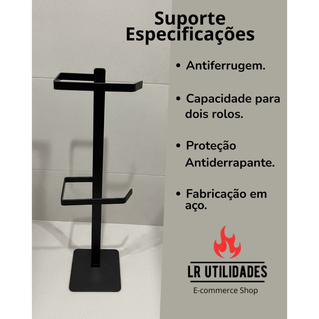 Suporte Porta Papel Higiênico De Chão Banheiro Aço Carbono 2 Rolos Preto Organização