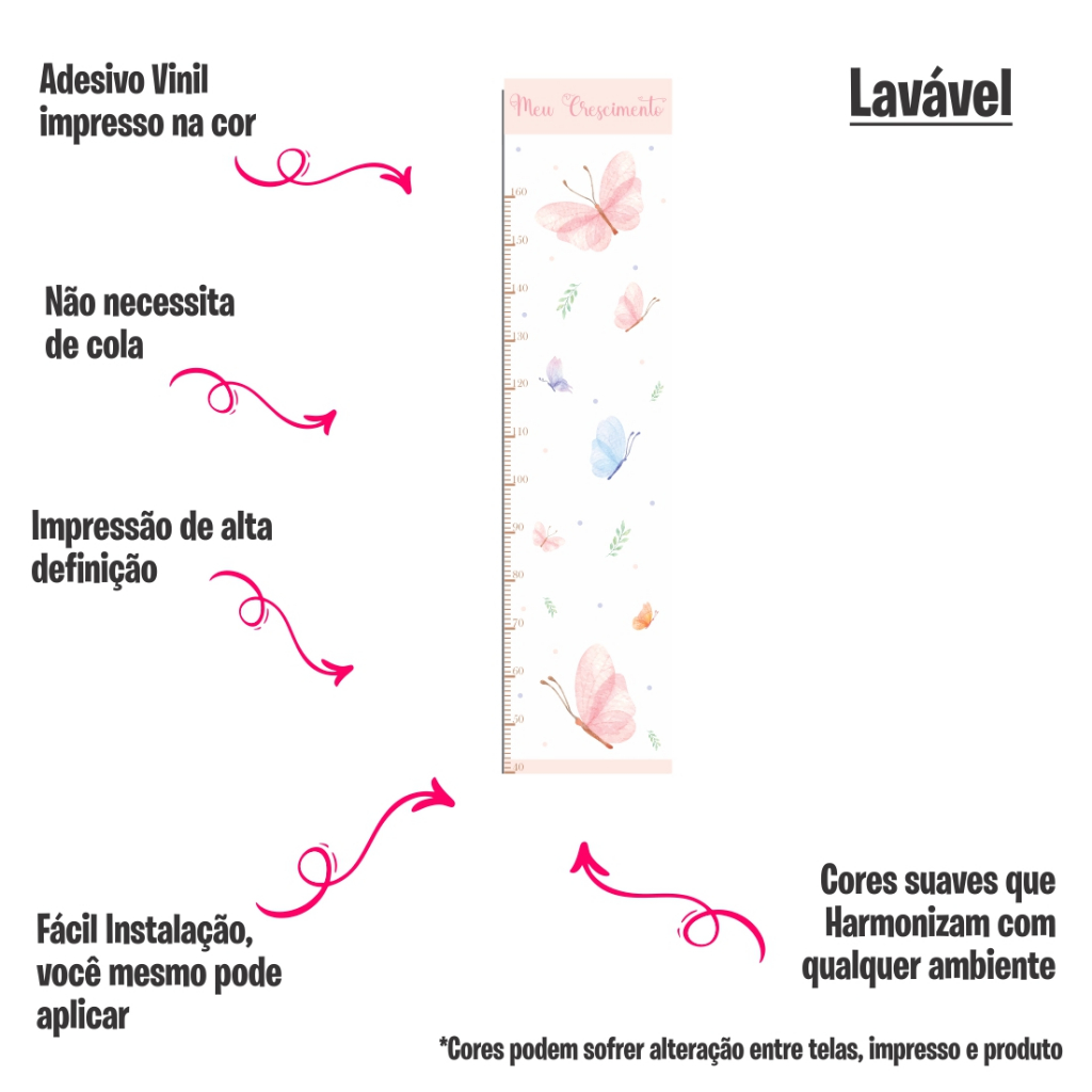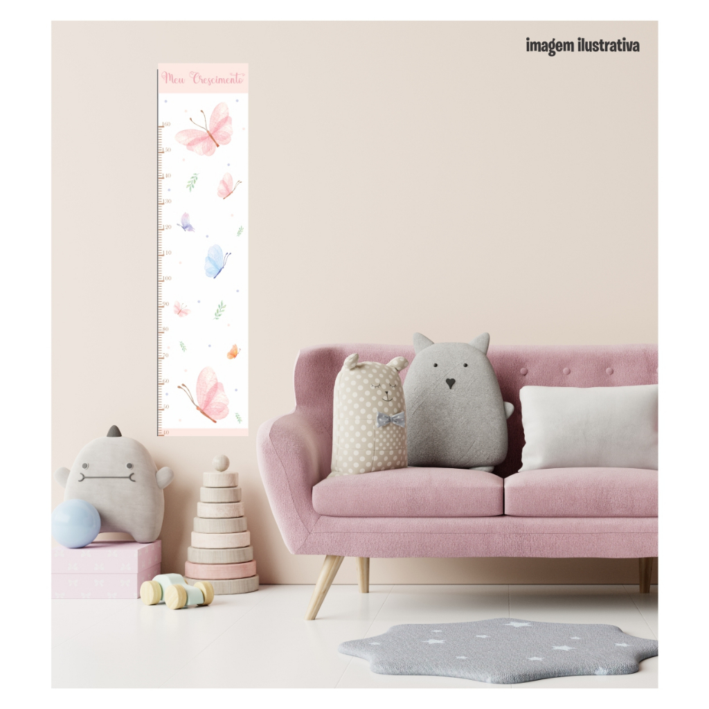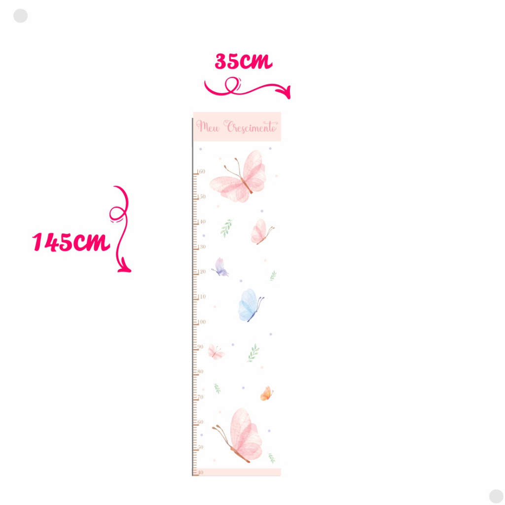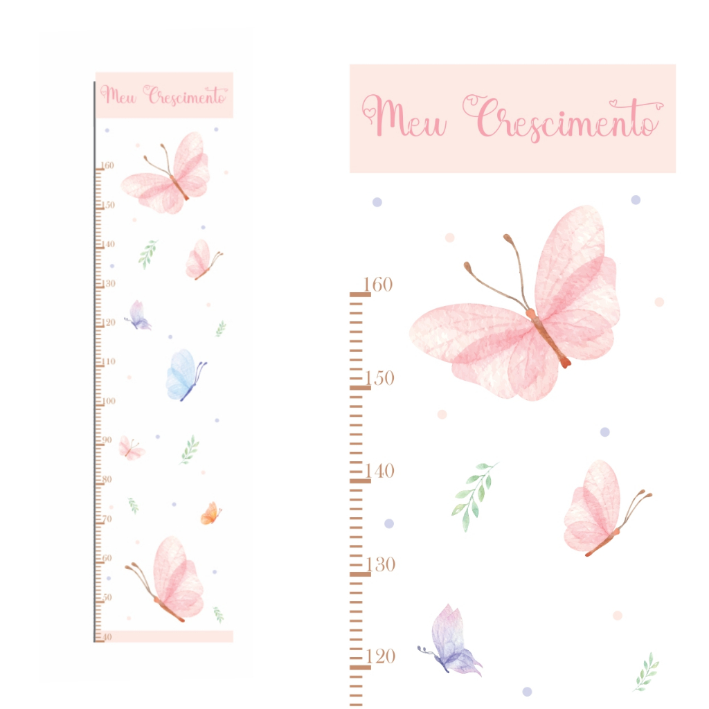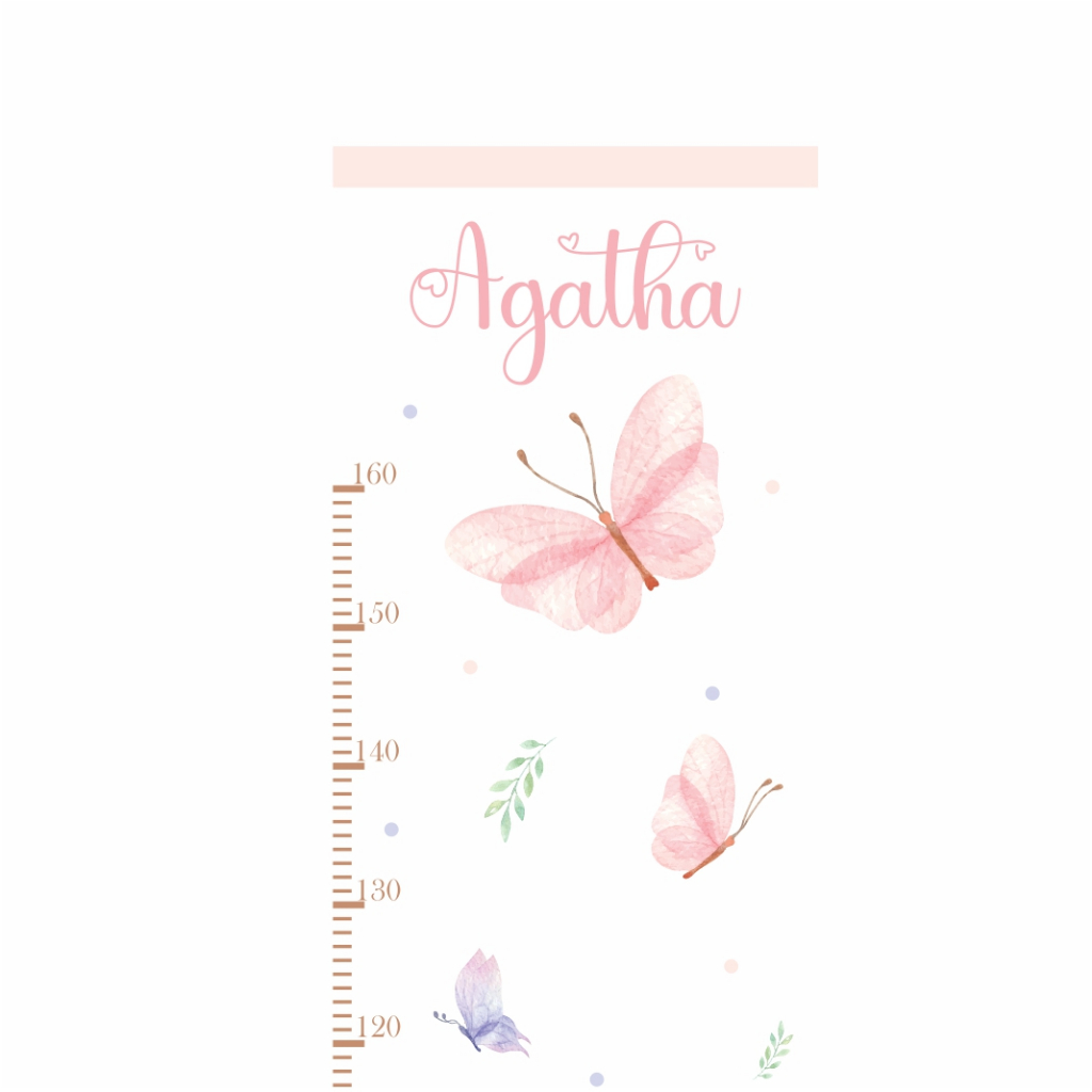 Régua de Crescimento Infantil Borboletas Aquarela Delicadas - Adesivo de Parede