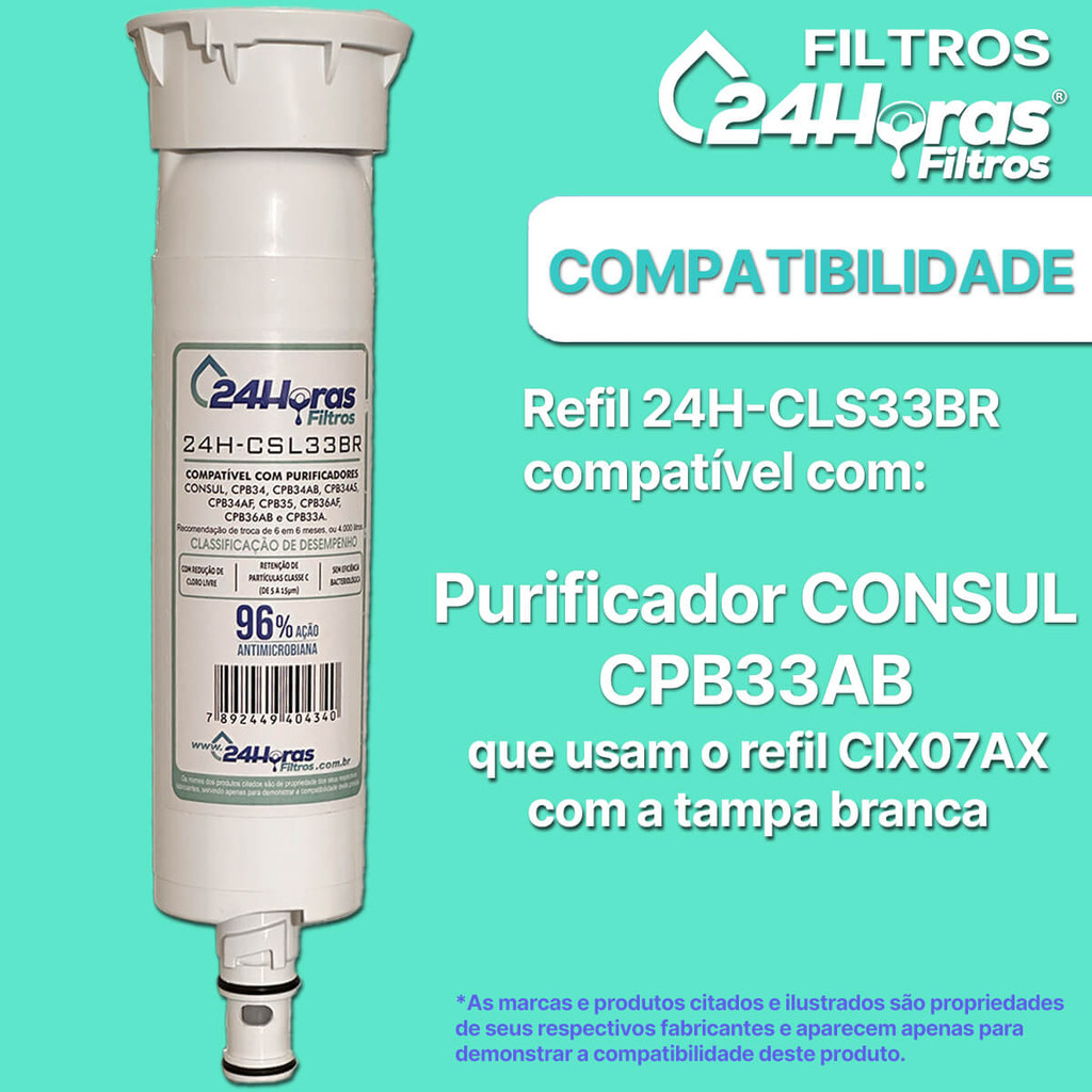 Kit 2 Refil Filtro Consul Compatível Purificador CPB33 AB CIX07AX Tampa Branca