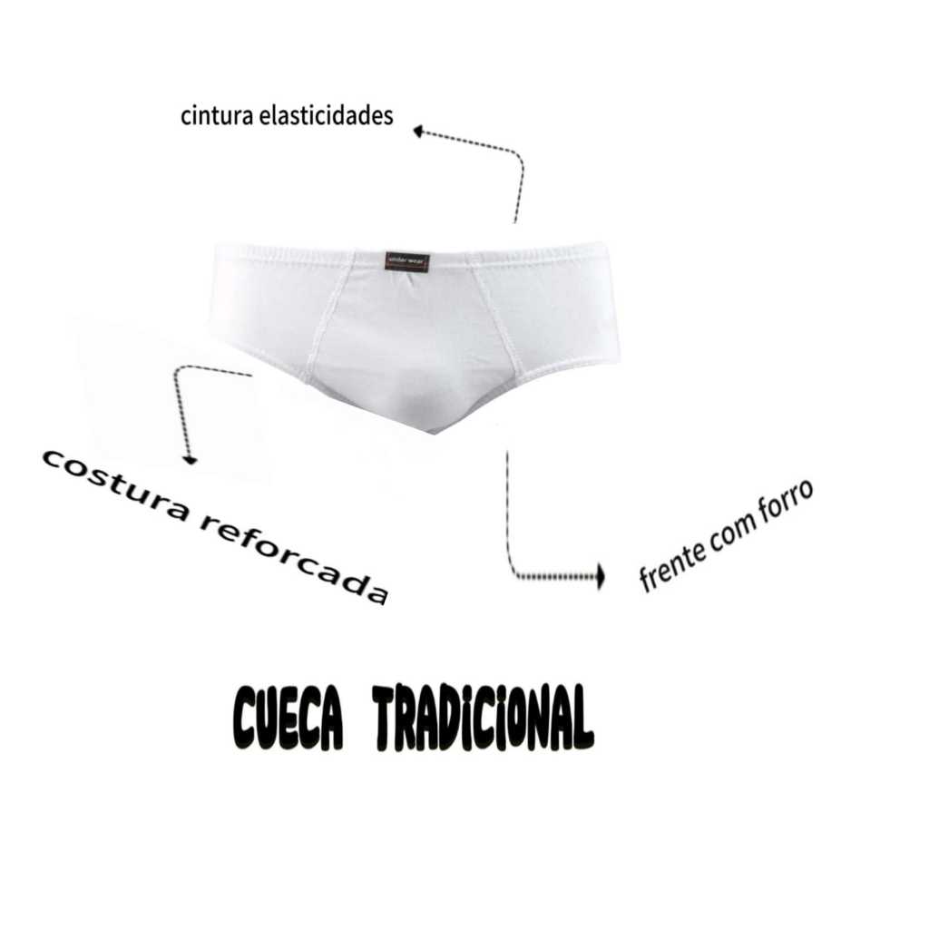 Kit 10 Cuecas masculinas tradicional com forro -SÓ BRANCA