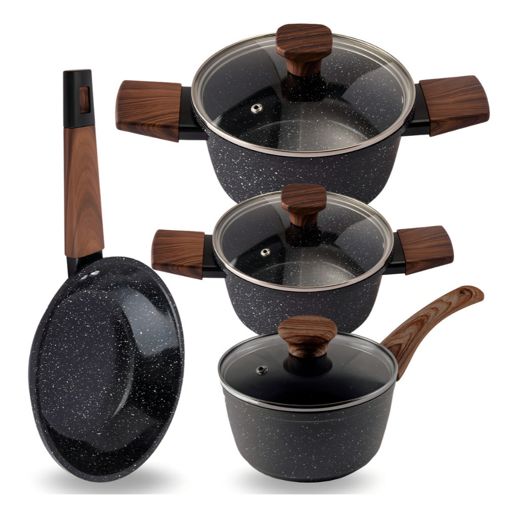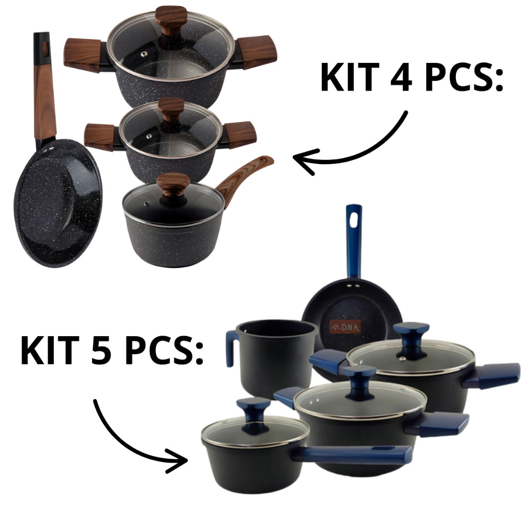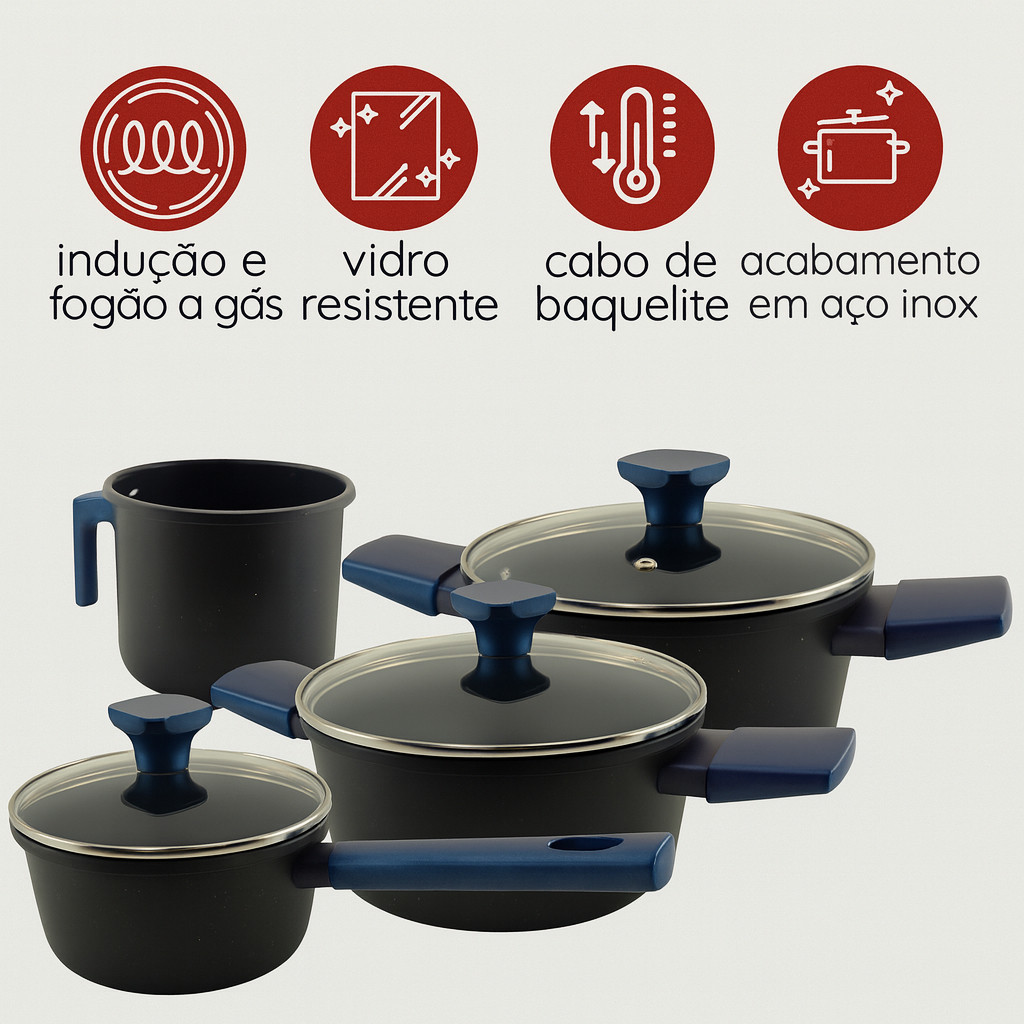 Jogo de Panelas Antiaderentes 4/5 Peças com Revestimento Cerâmico Para Indução/Gás Tampa de Vidro INMETRO