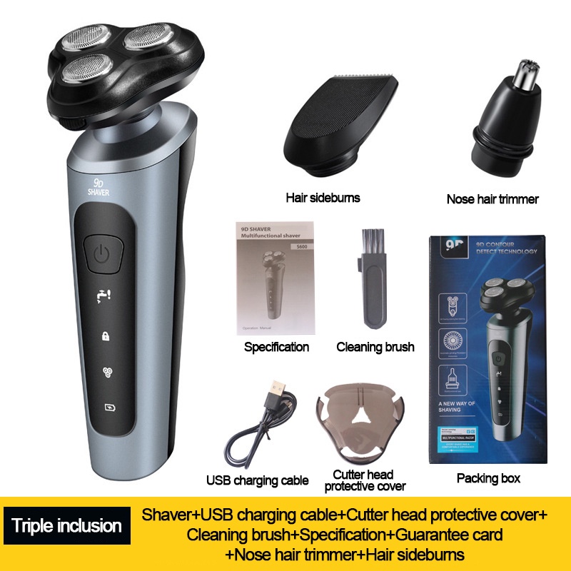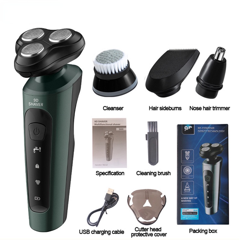 Barbeador Para Homem 4 Em 1 Elétrico Multifuncional 9D Flutuante 3 Lâminas Lavador De Cabelo/Aparador De Alta Potência USB Recarregável