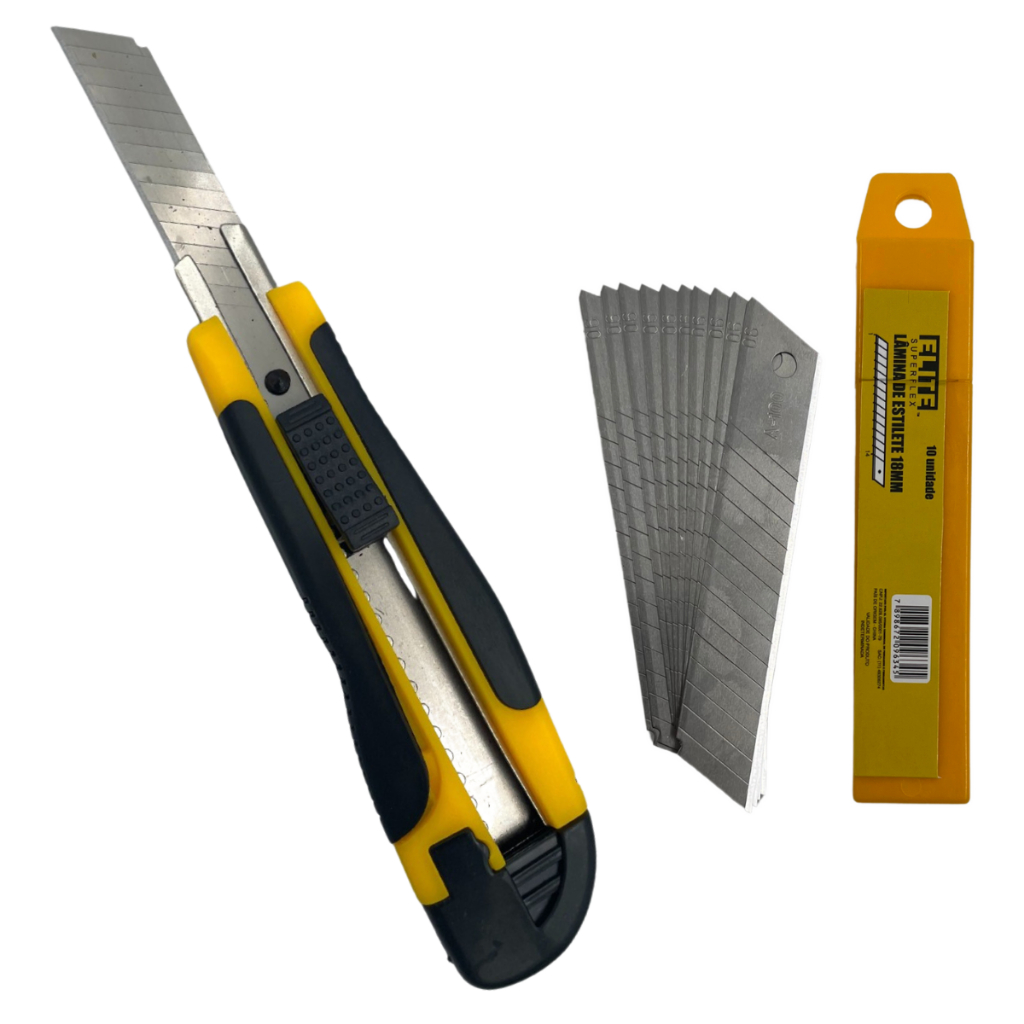 Kit 2 Estilete + 10 Lâminas de Estilete - Estilete Emborrachado 18mm