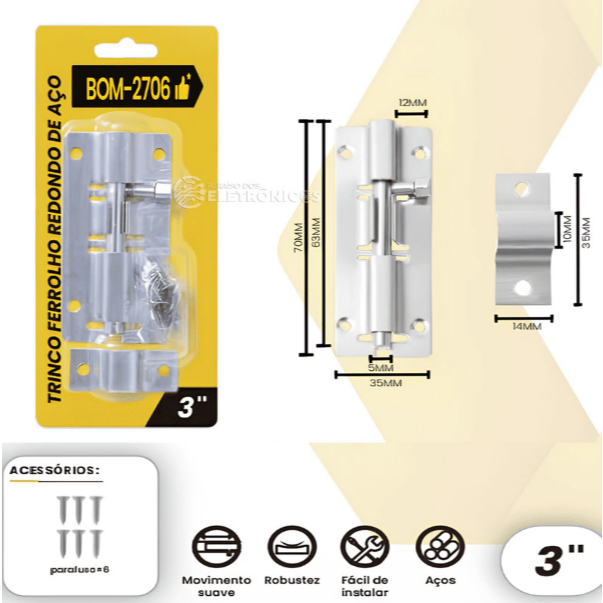 Trinco Ferrolho 70mm Aço Inoxidável, Design Funcional e Alta Durabilidade BOM2706