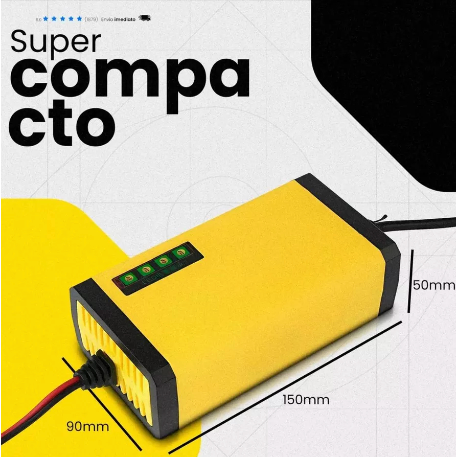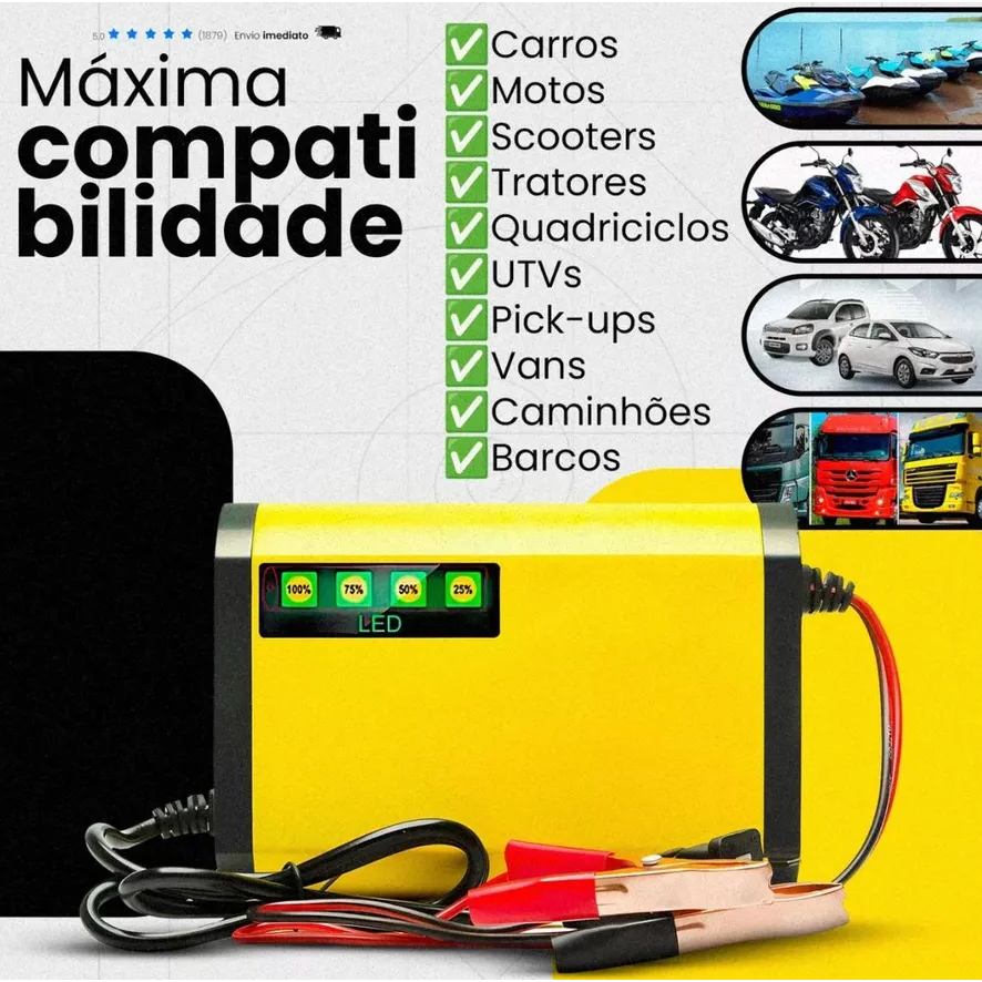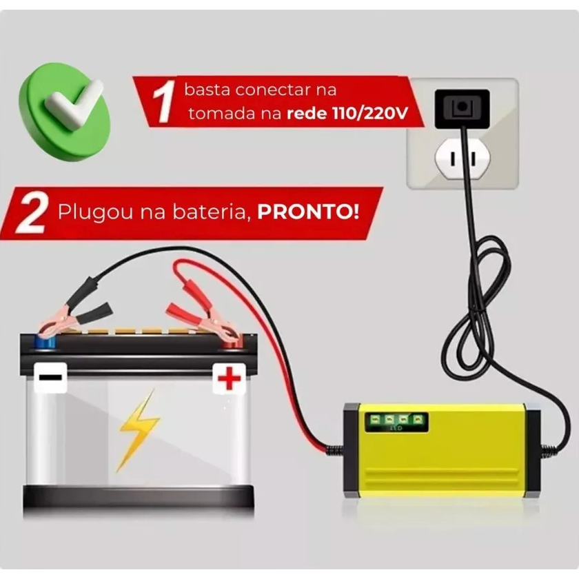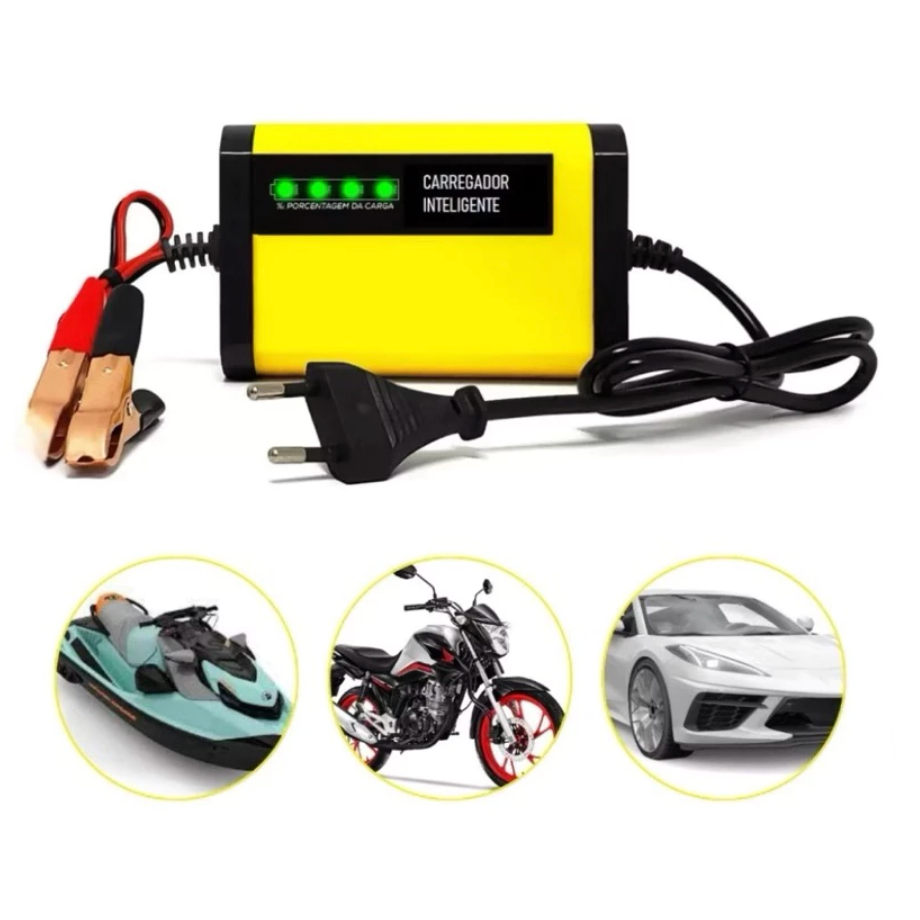 Carregador Bateria Automotivo 12v Até 300 Amperes Carga Lenta 2a Inteligente Portátil Carro Moto Caminhão Bivolt 110/220