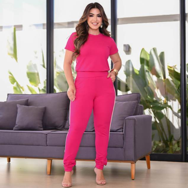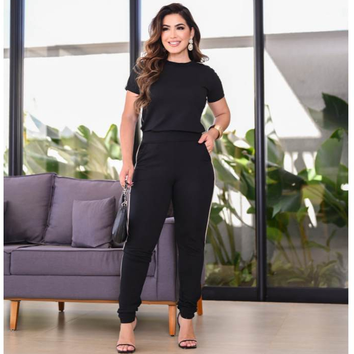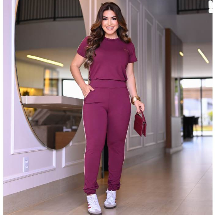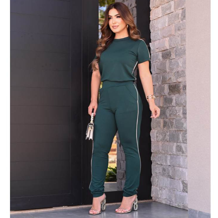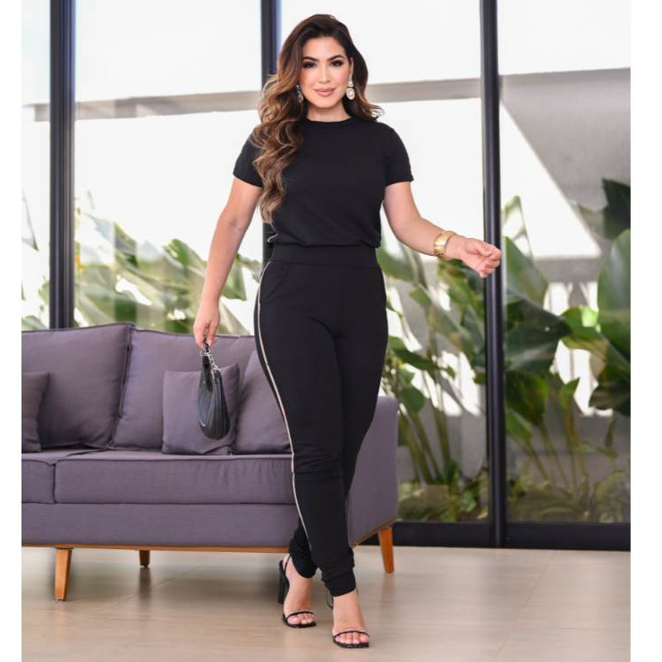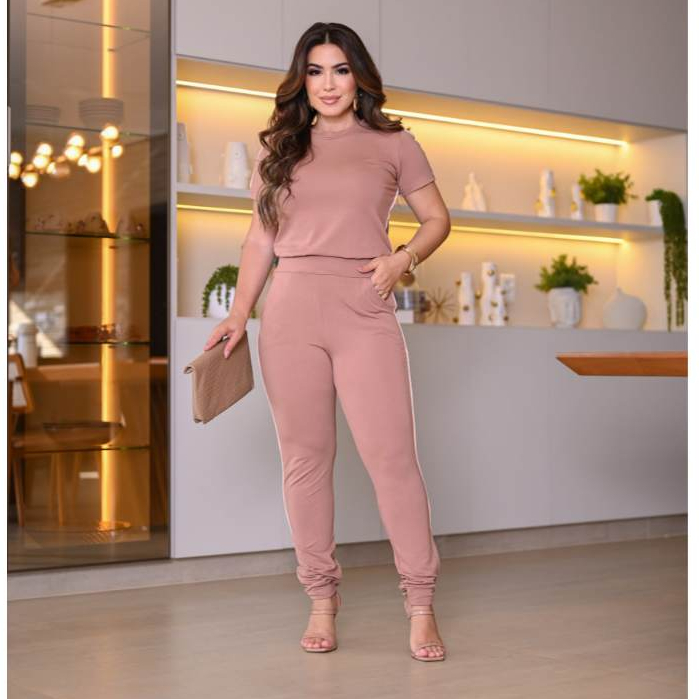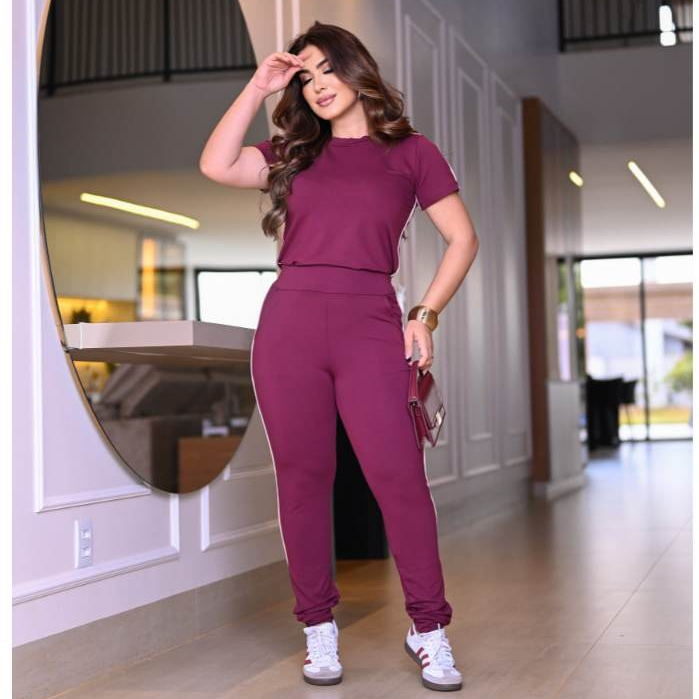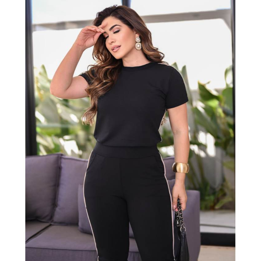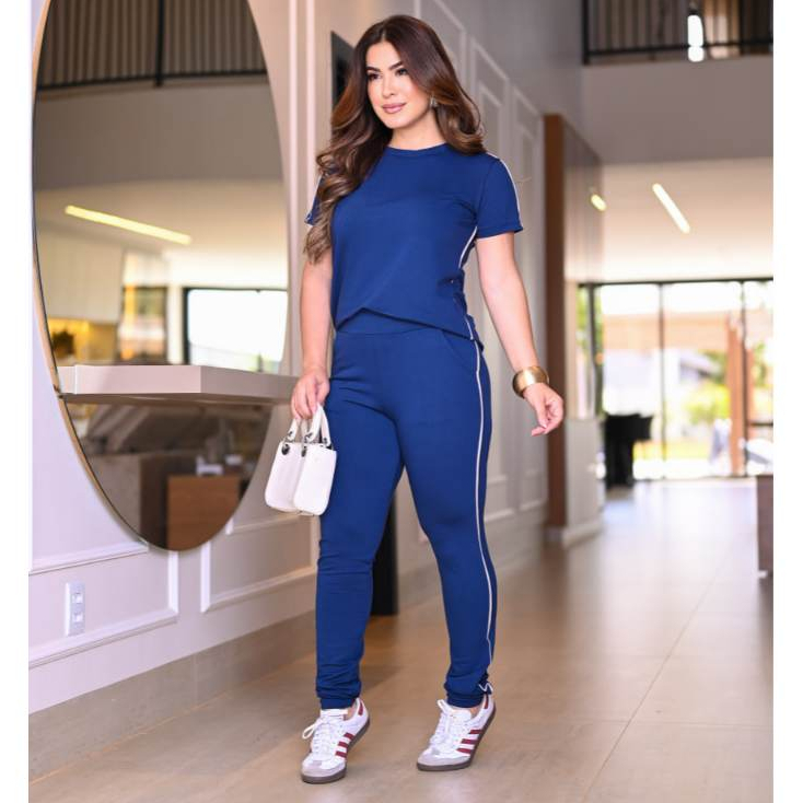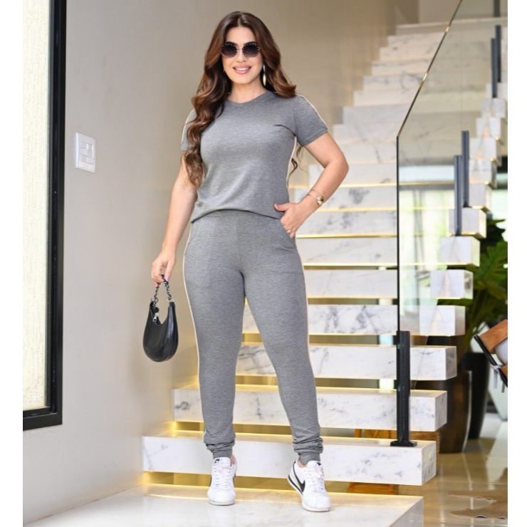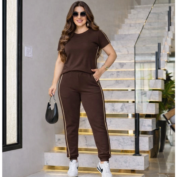 Conjunto Feminino Casual Malha Moletinho Confortável Blusa Calça Com Listras Roupa Feminina Academia Fitness Verão 2025