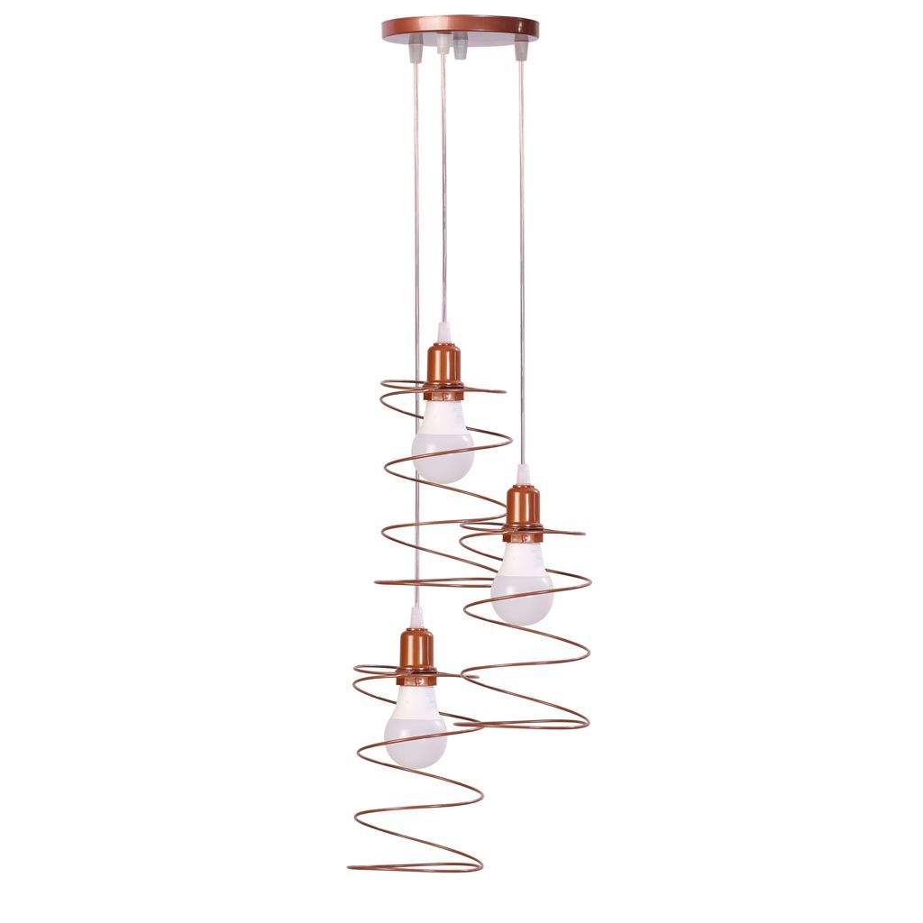 Lustre Luminária Pendente Triplo Aramado Retrô Mola