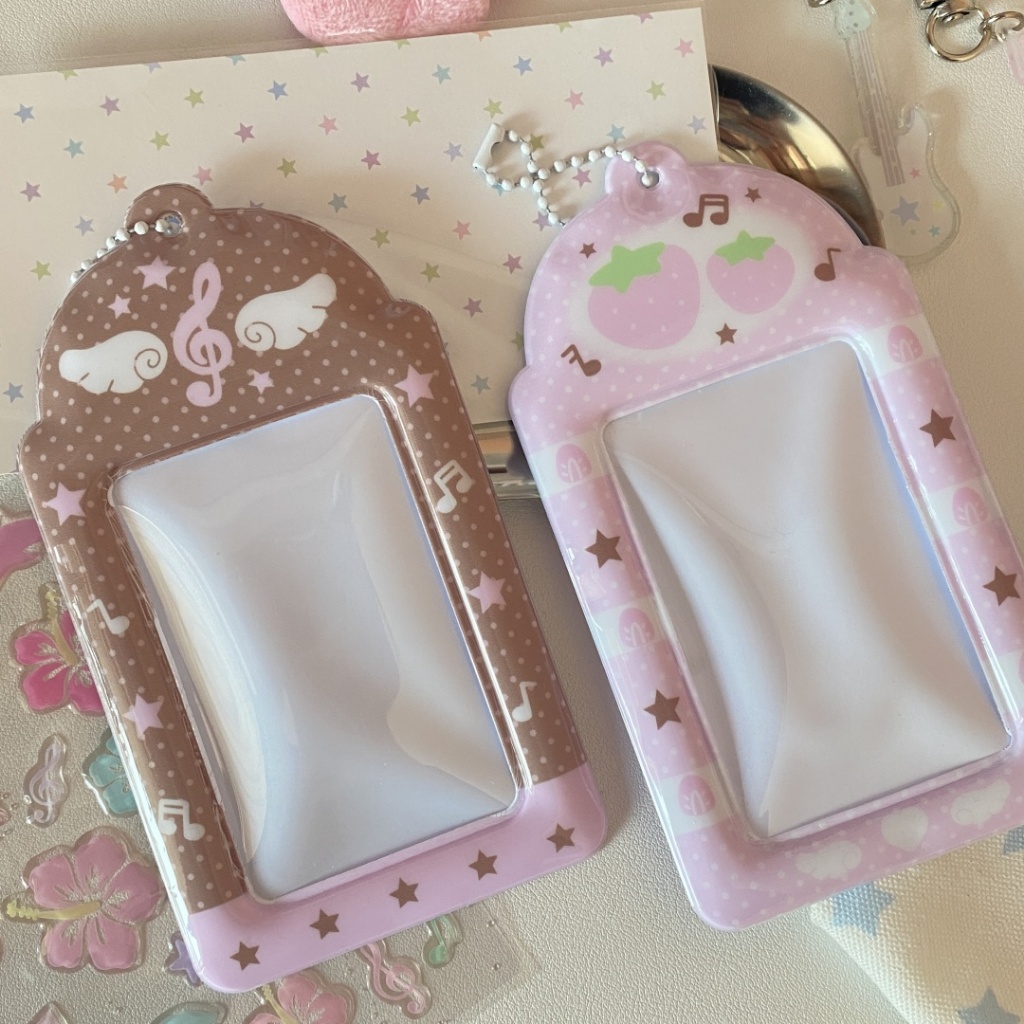Asas De Nota Marrom Rosa Porta-Cartões Fotográficos De 3 Polegadas De campus De Estudante De Morango Fofo