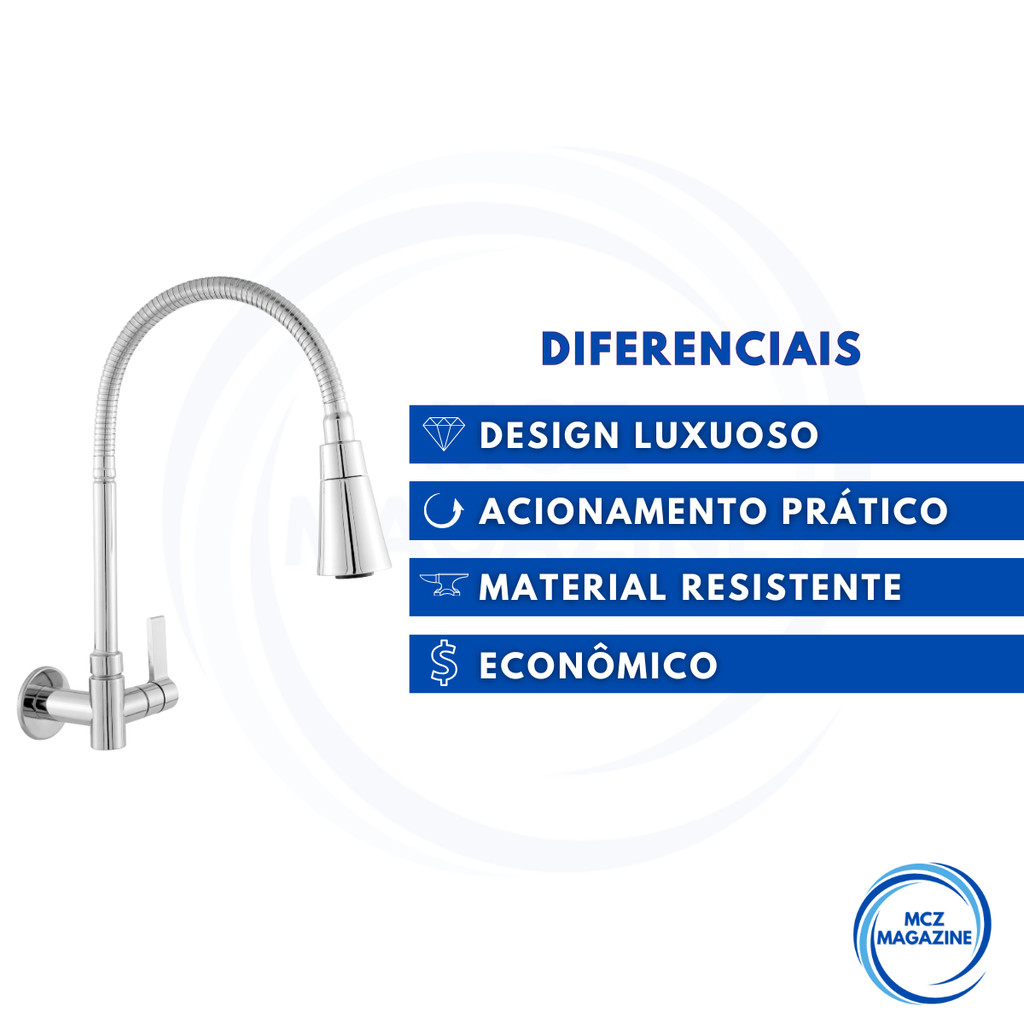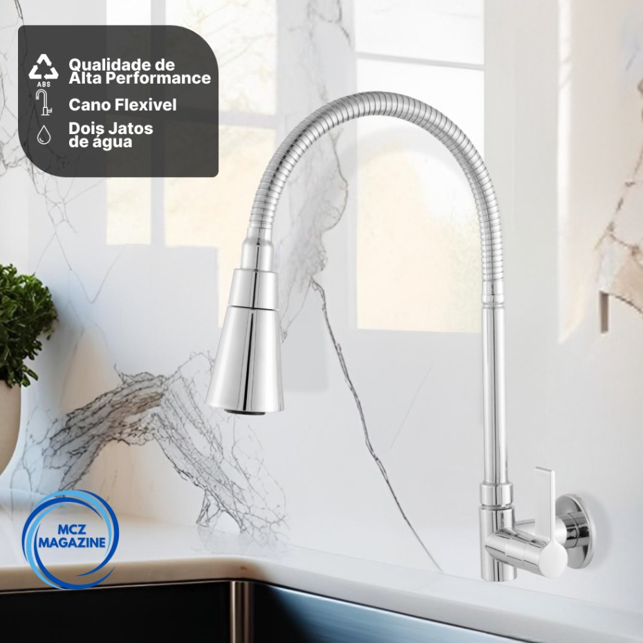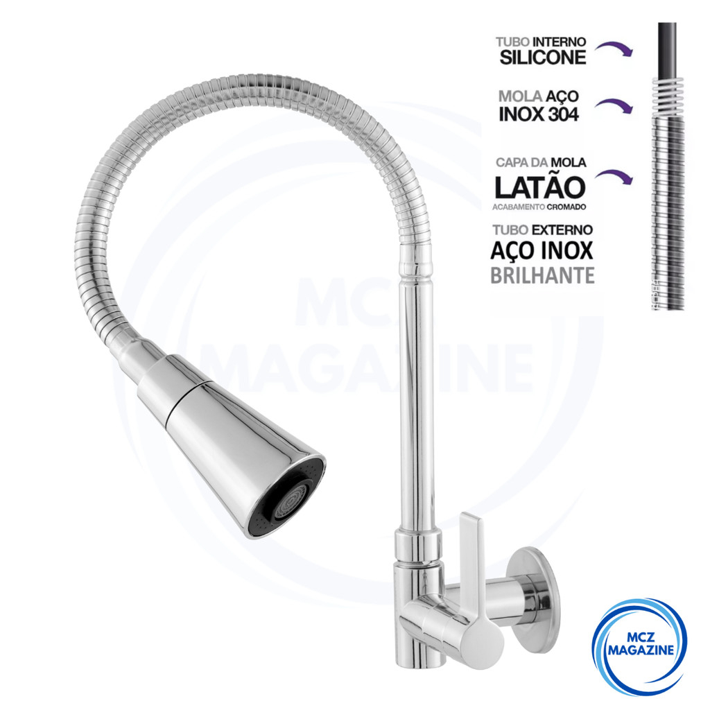 Torneira Pia Cozinha Gourmet Inox Chuveirinho Cozinha Parede Flexível 1/4 de Volta