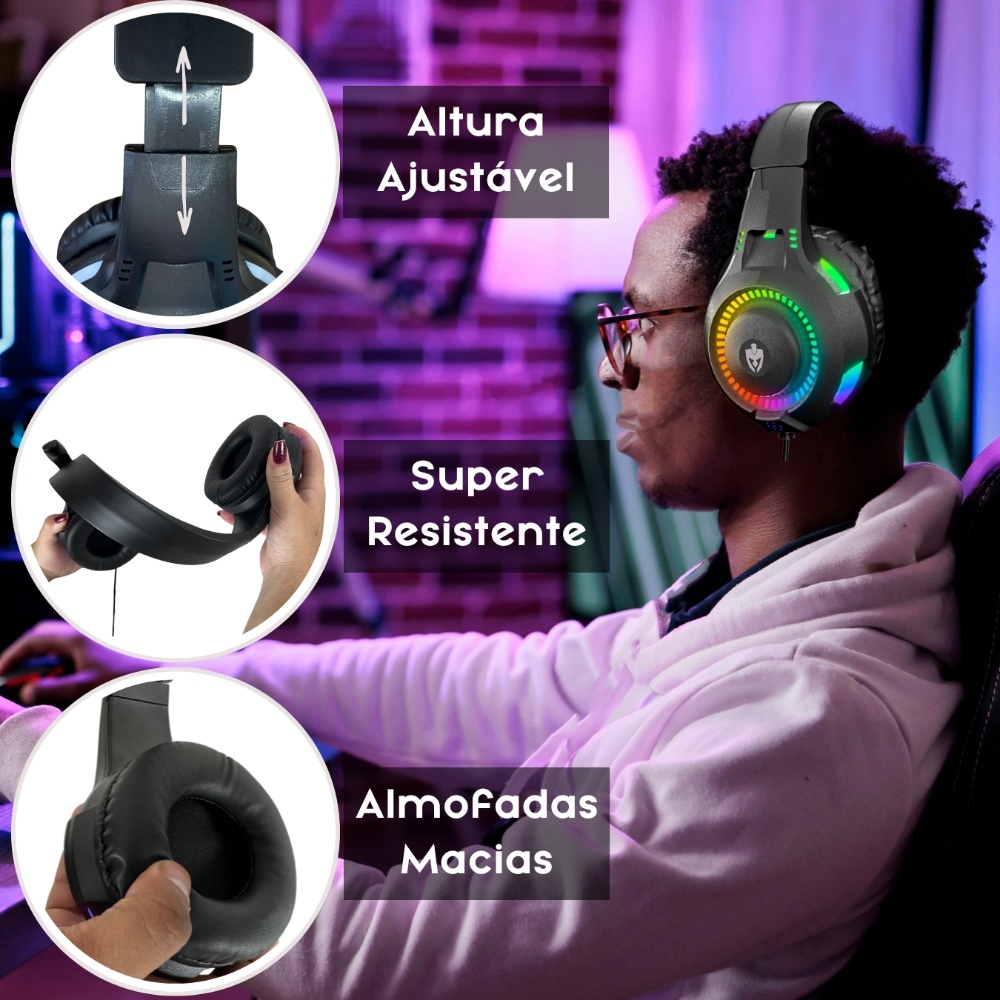 Combo Gamer Periféricos Teclado Mouse Rgb Mouse Pad Headset com fio Computador Notebook Vídeogame