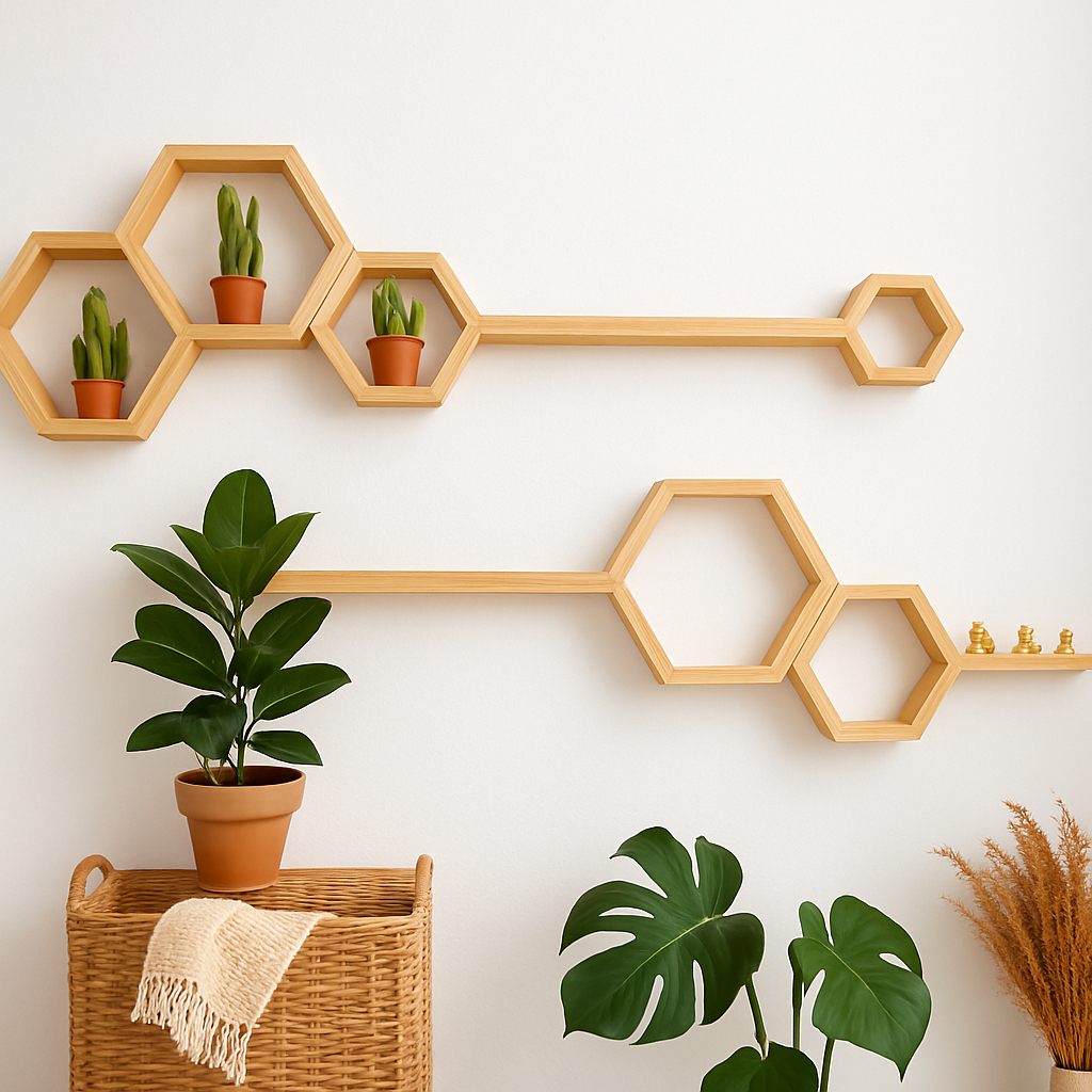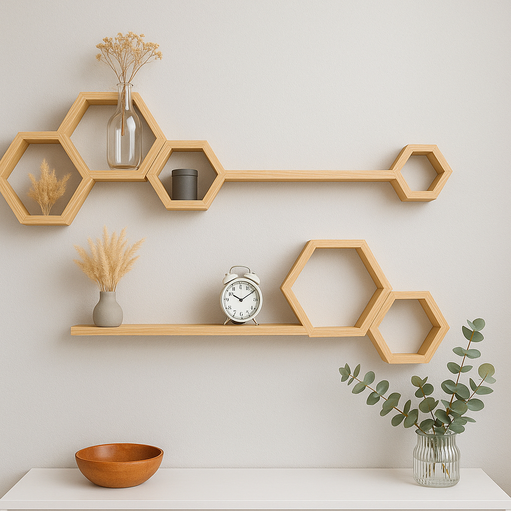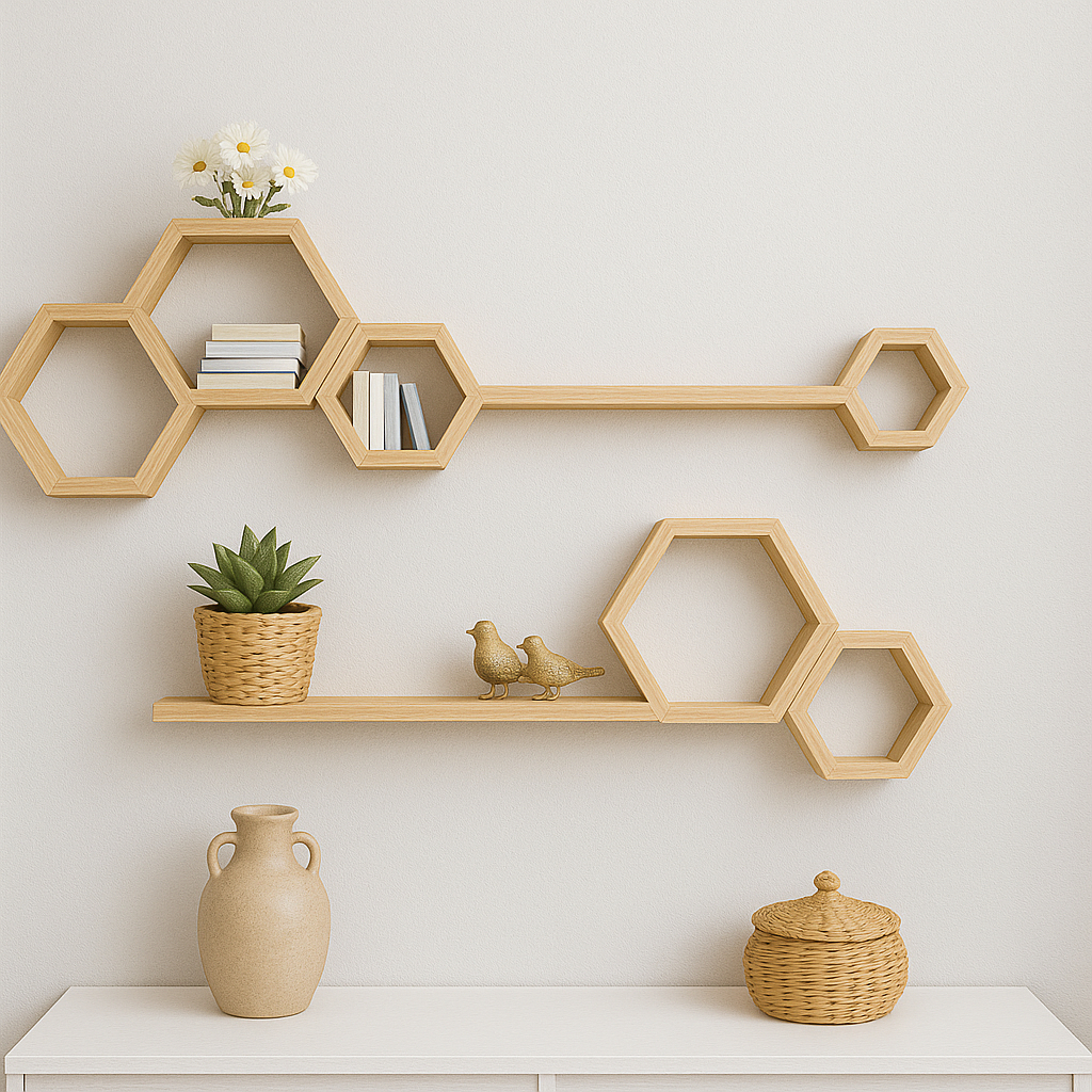 Kit Prateleira Nichos Colmeia + Suporte Invisível Decorativa