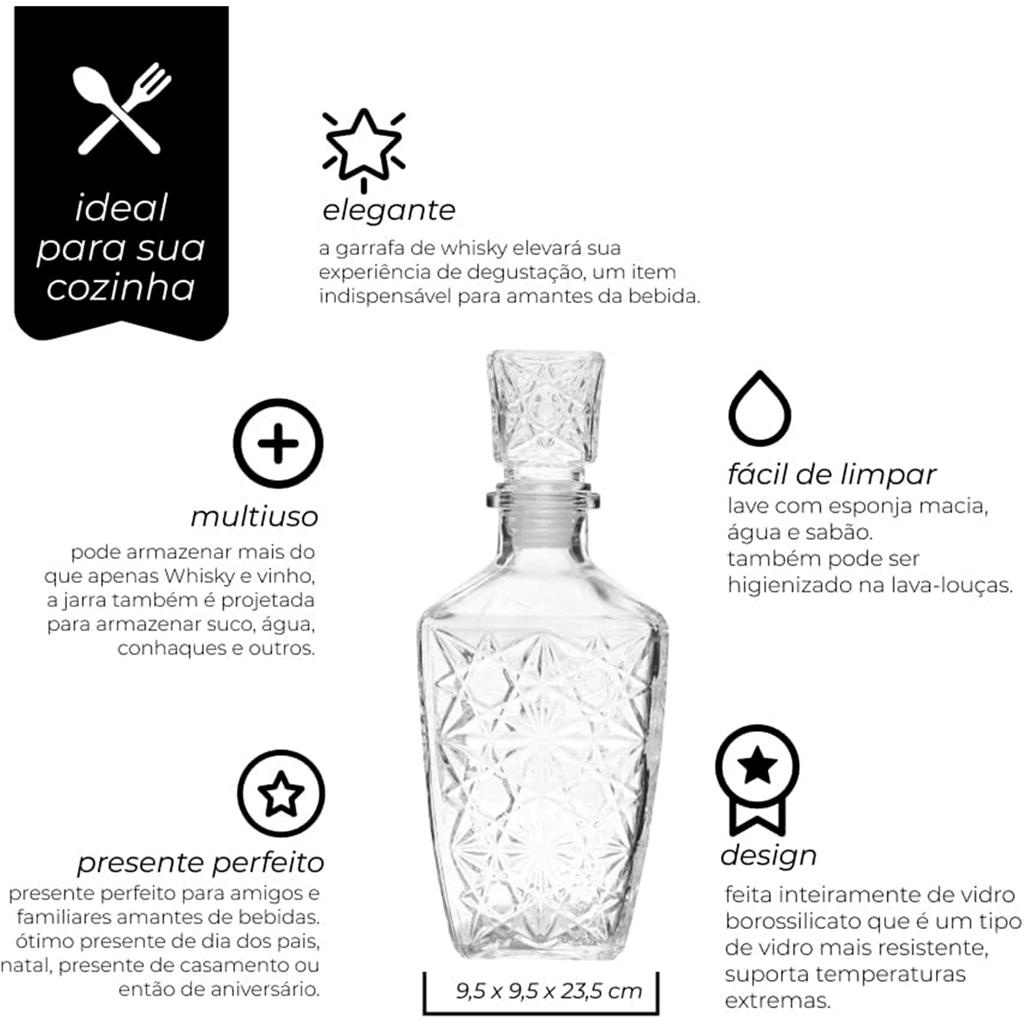 Garrafa De Uisque Licor Vodka Grande 800Ml Licoreira Para Uisque Cachaca Sofisticada Em Vidro Resistente Decorativa - Mimo Style