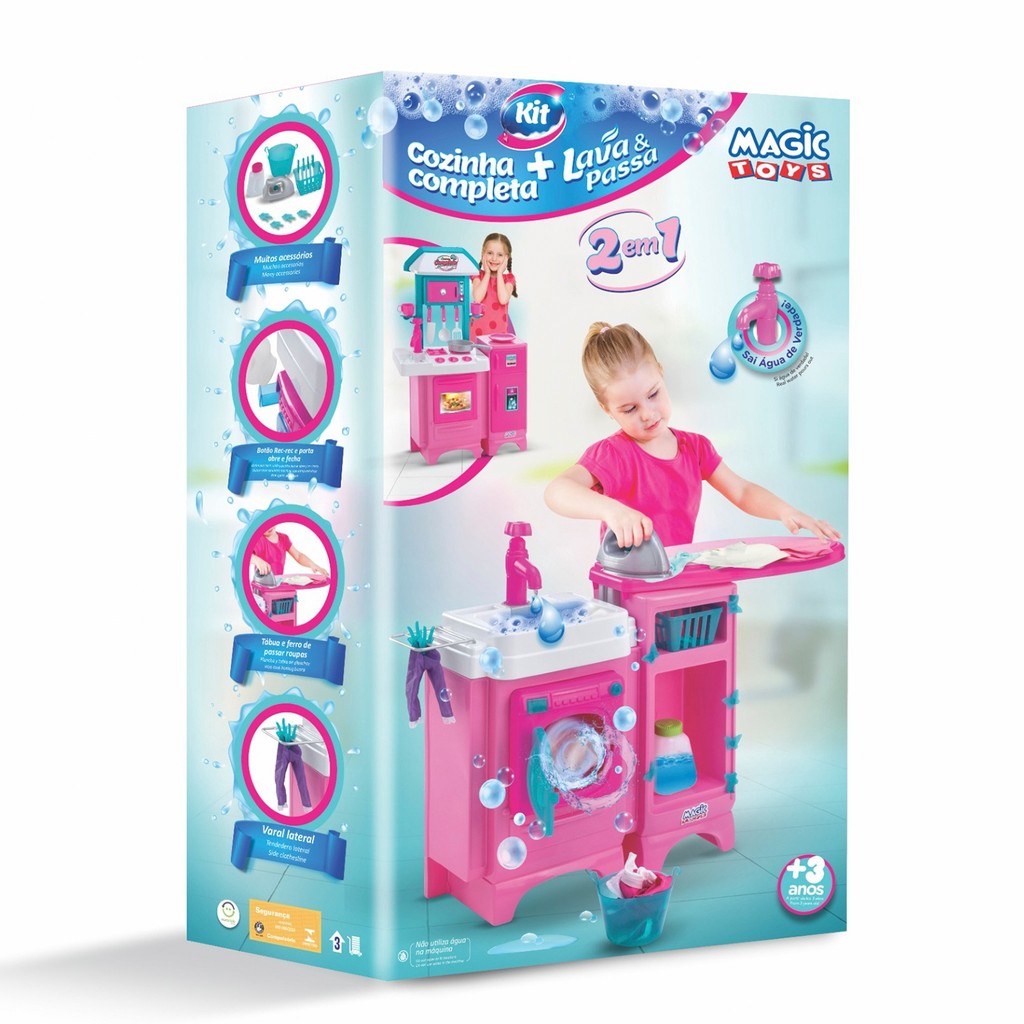 Lavanderia Infantil Lavadora Lava E Passa Secadora Sai Água Com Acessórios Magic Toys