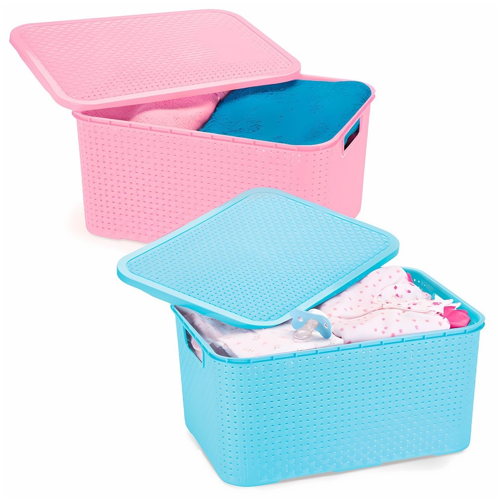 Mini Caixa Rattan 7L Baby Com Tampa E Pegadores Para Organização De Brinquedos - Monte Líbano