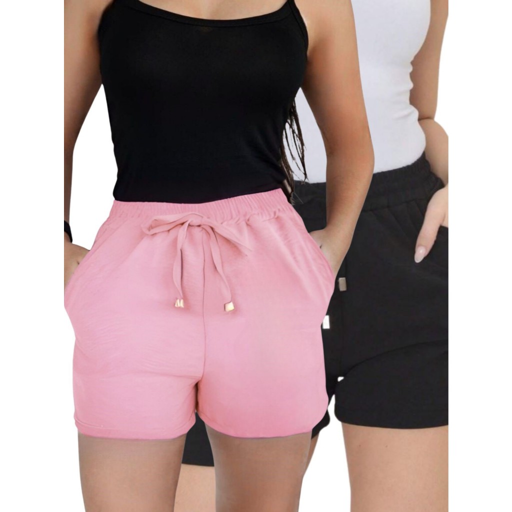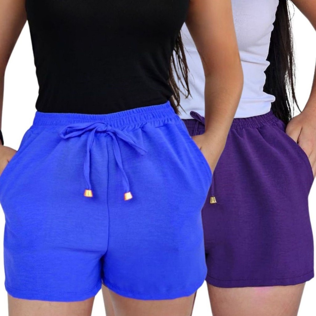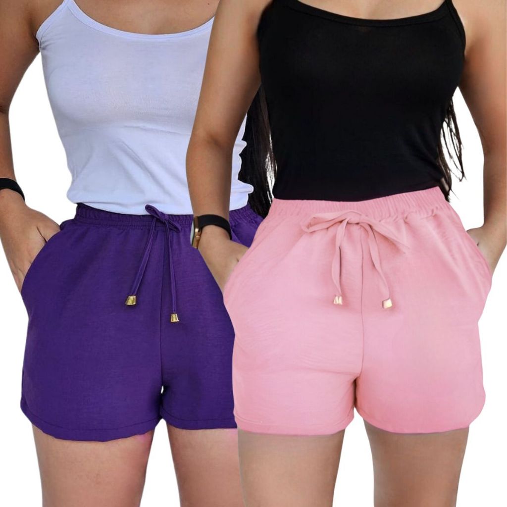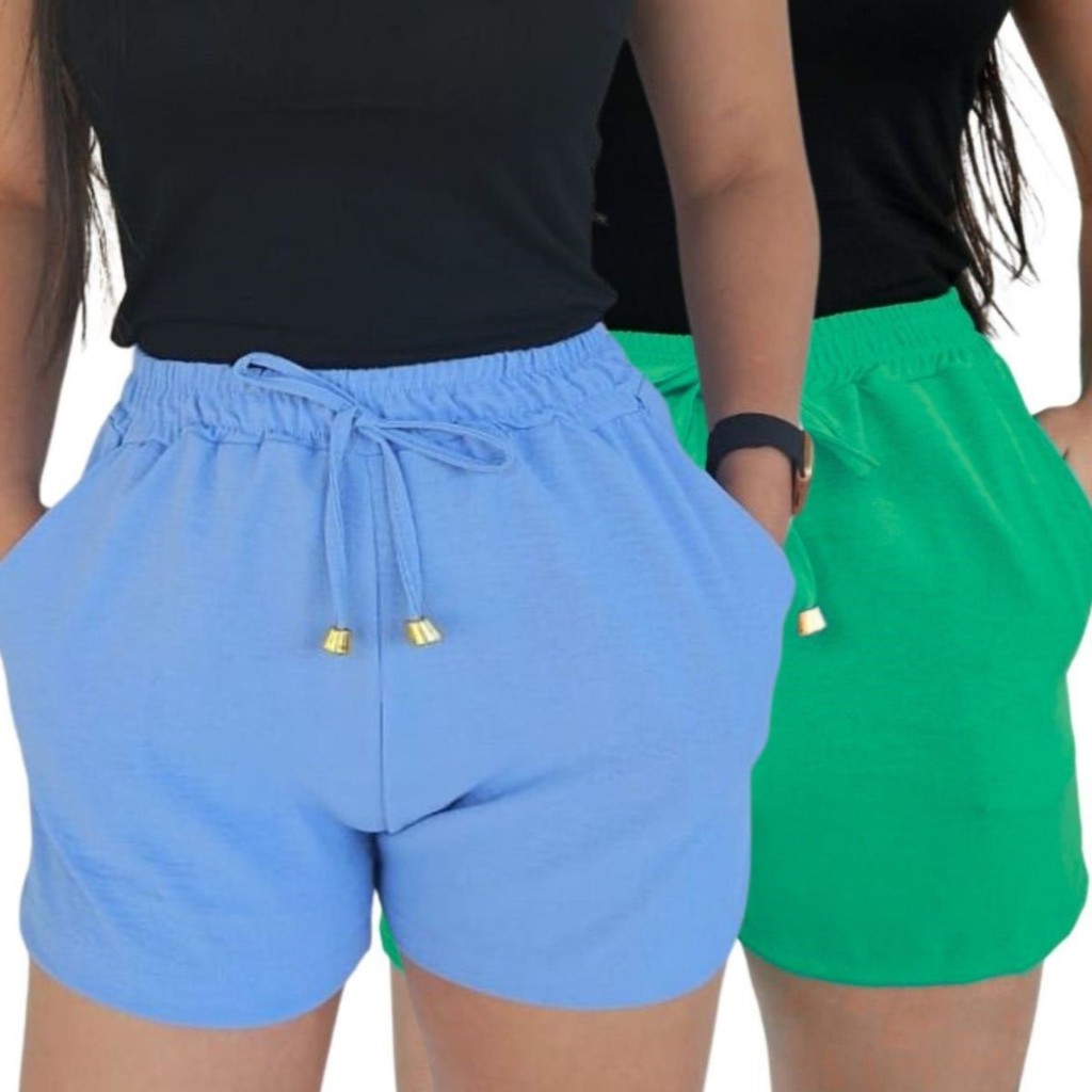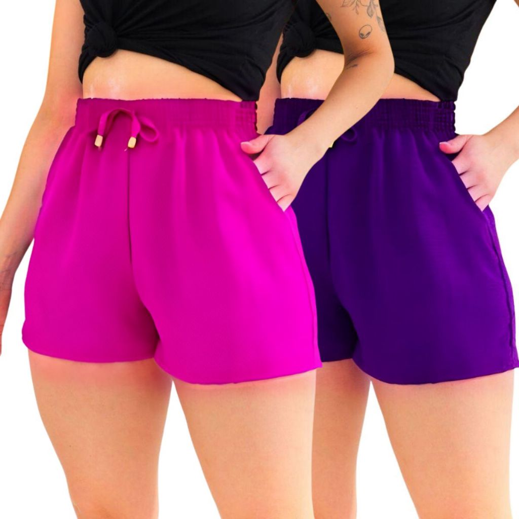 Kit 2 Shorts Duna Feminino com bolso Verão Leve Shortinho Tendência Moda com Elástico Cintura Alta