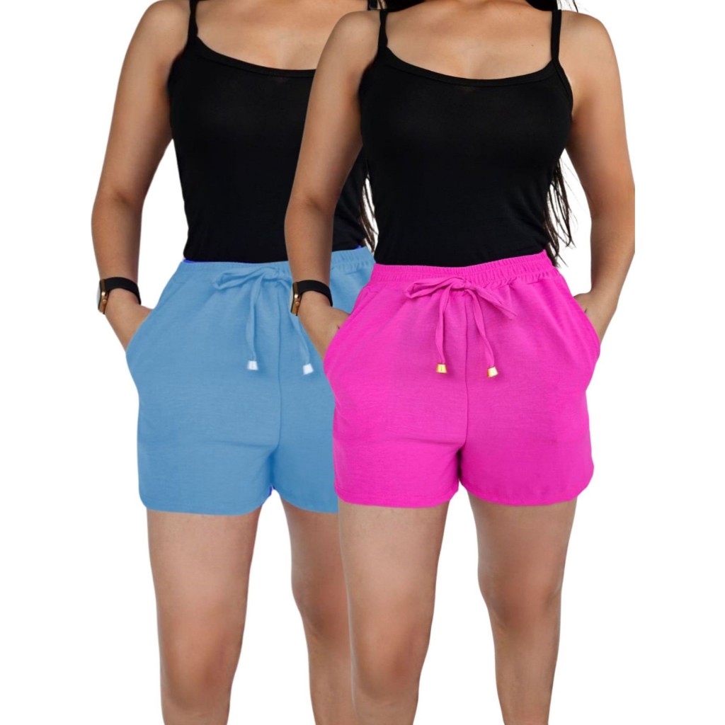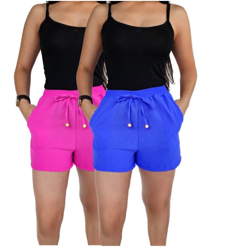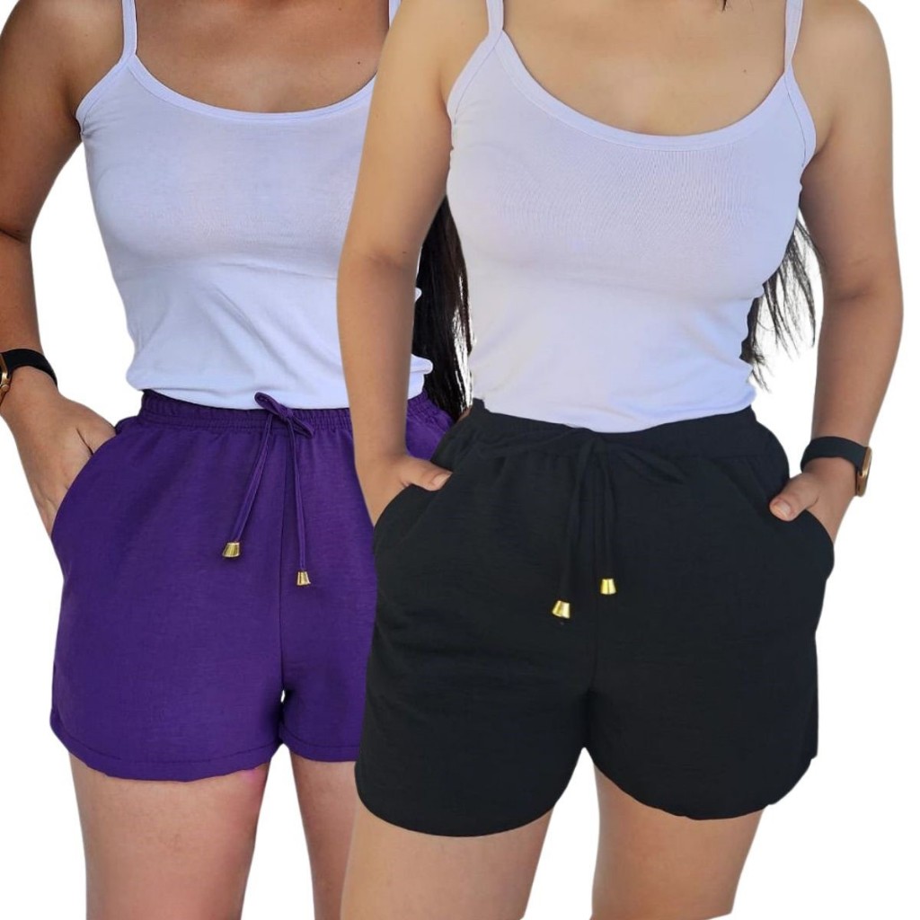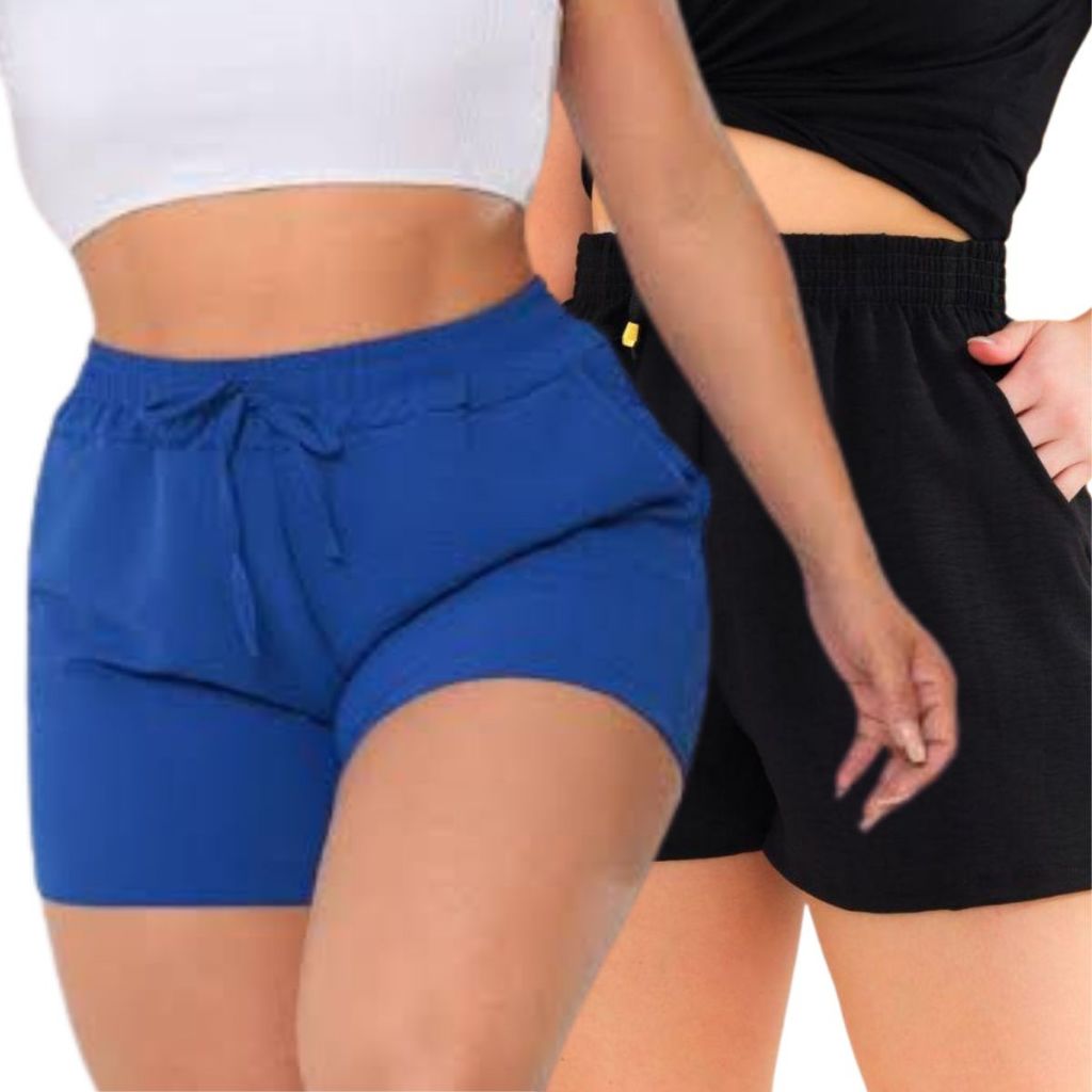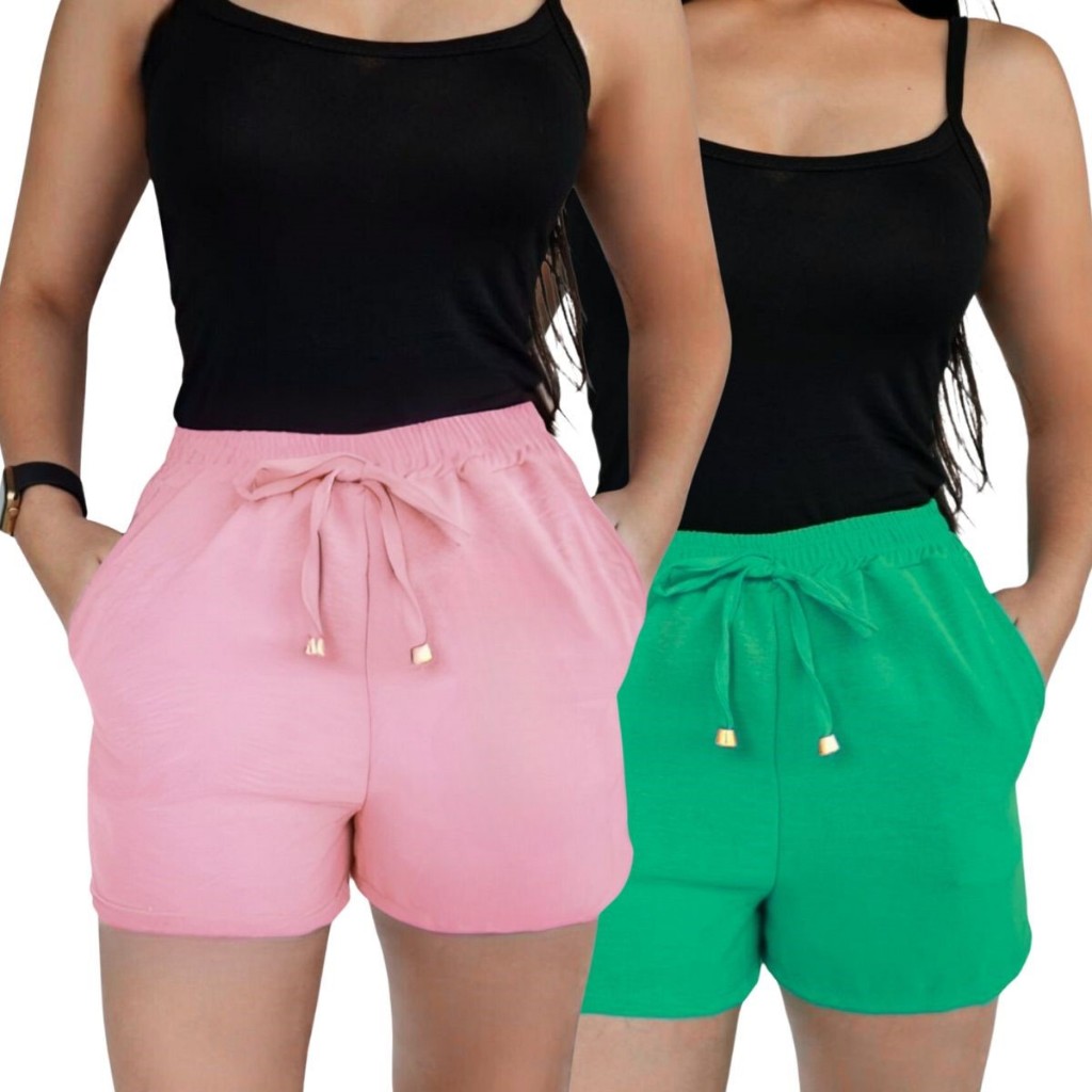 Kit 2 Shorts Duna Feminino com bolso Verão Leve Shortinho Tendência Moda com Elástico Cintura Alta