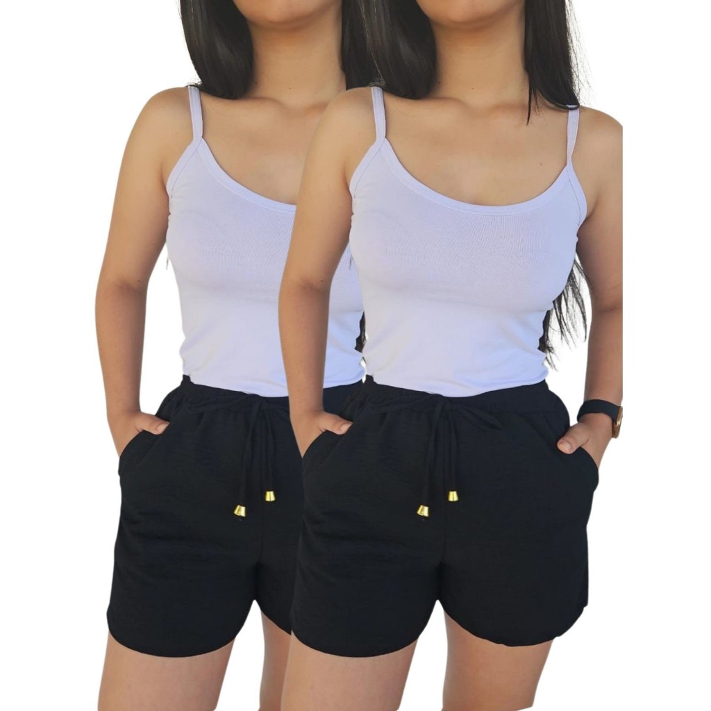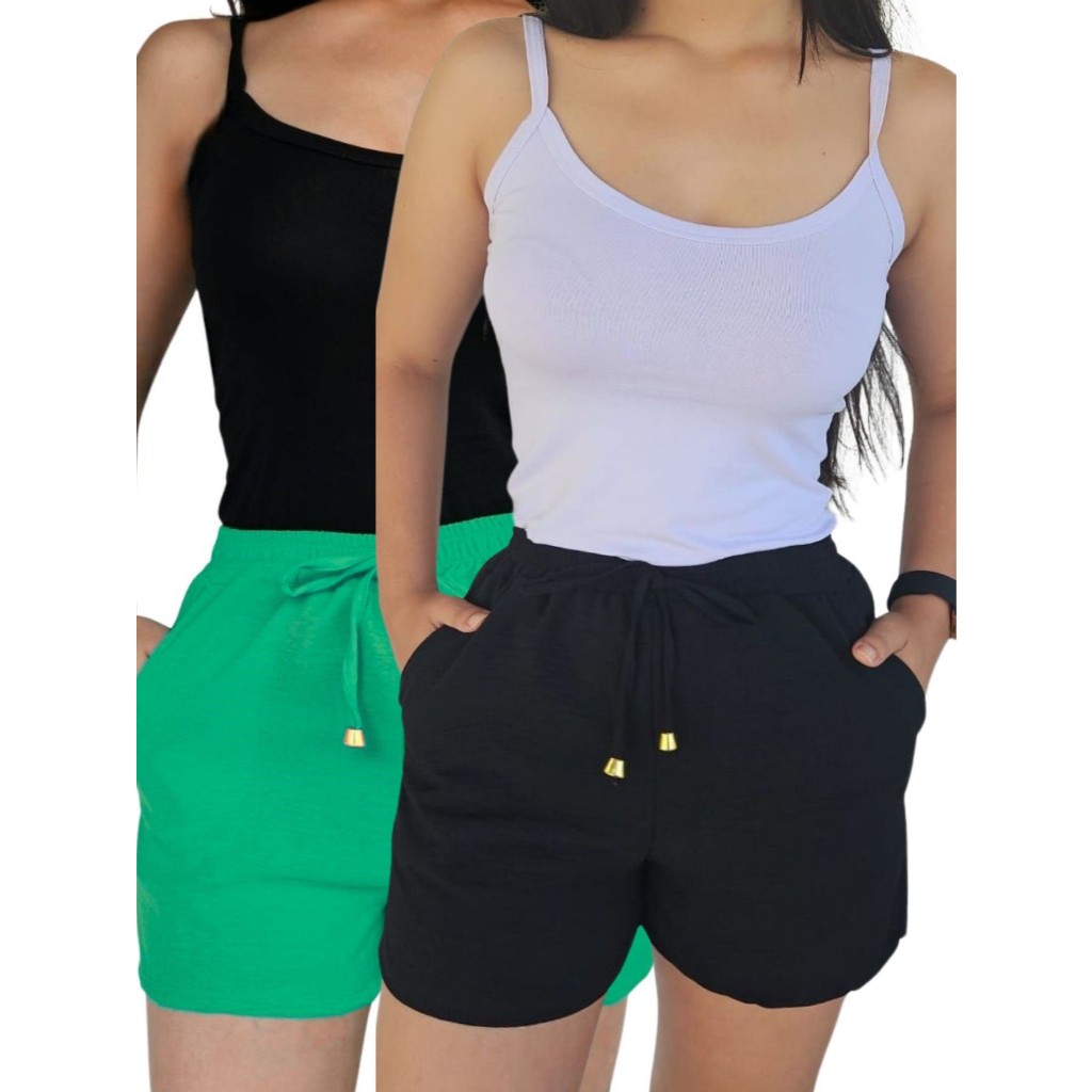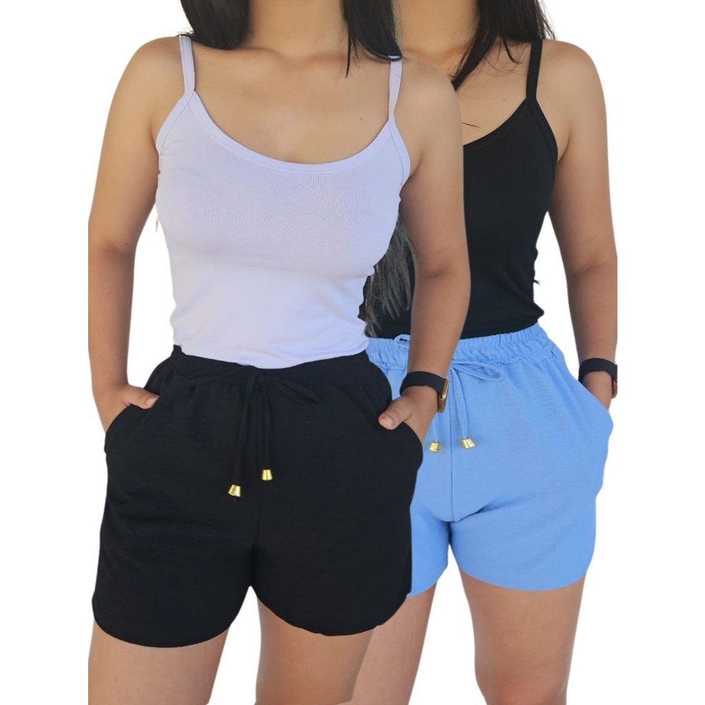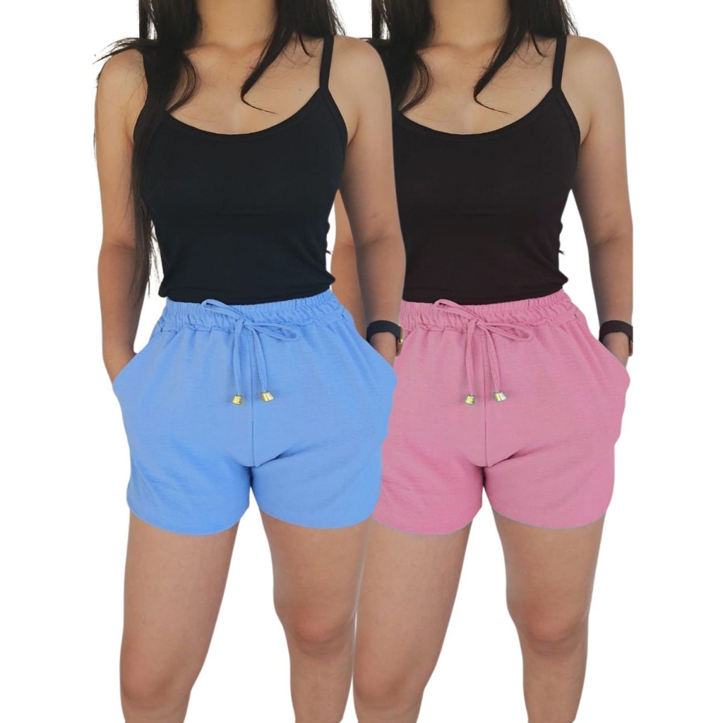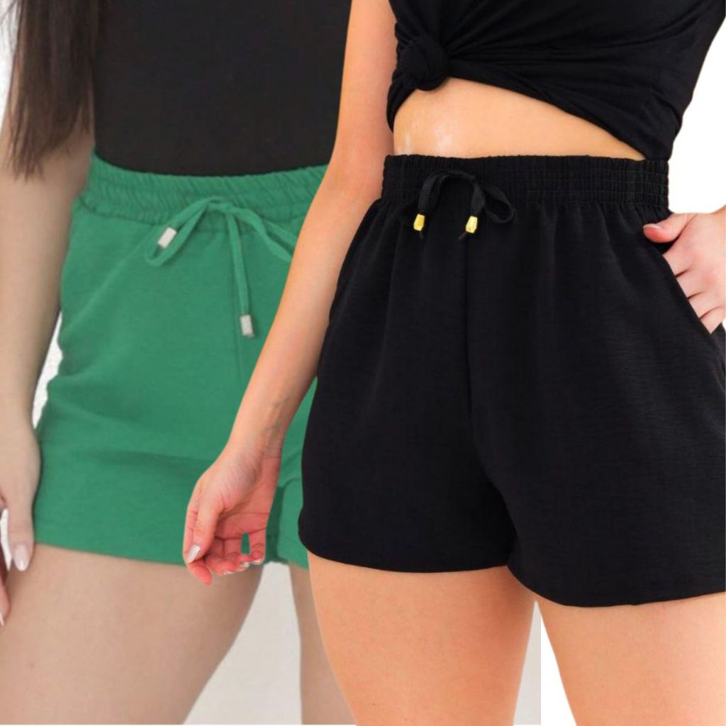 Kit 2 Shorts Duna Feminino com bolso Verão Leve Shortinho Tendência Moda com Elástico Cintura Alta