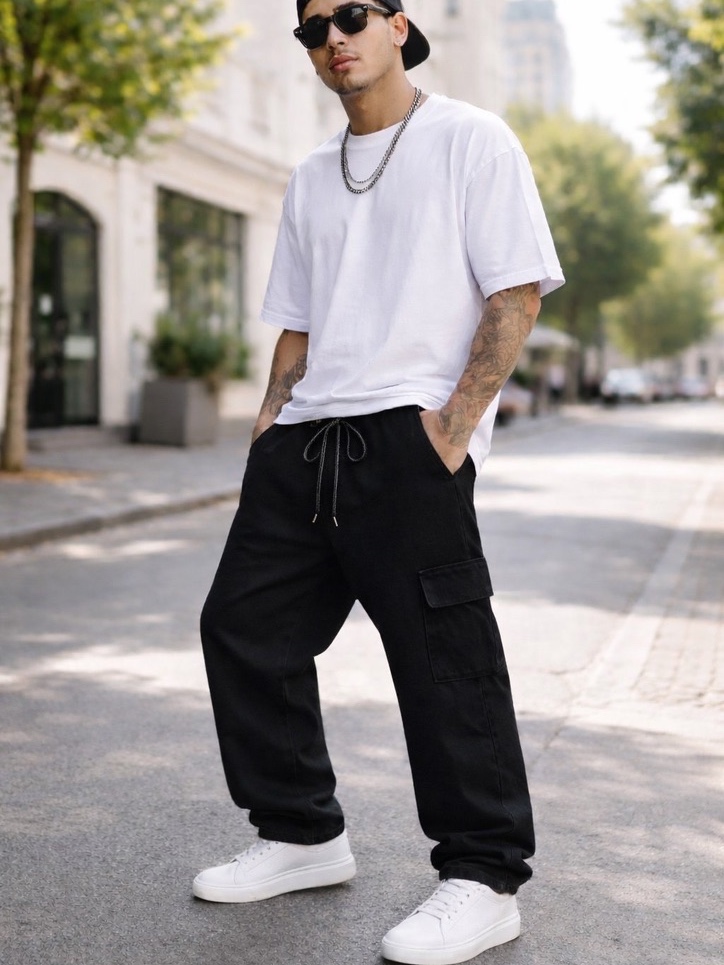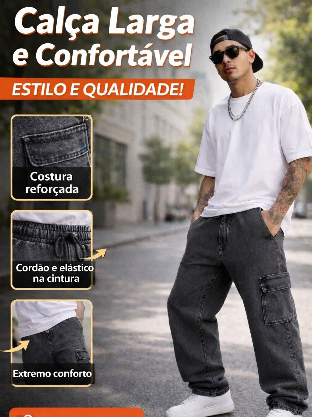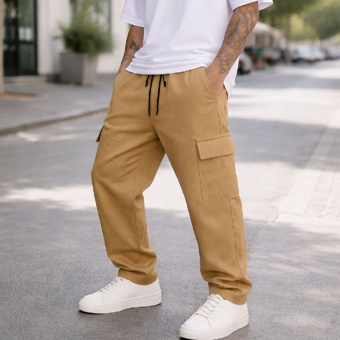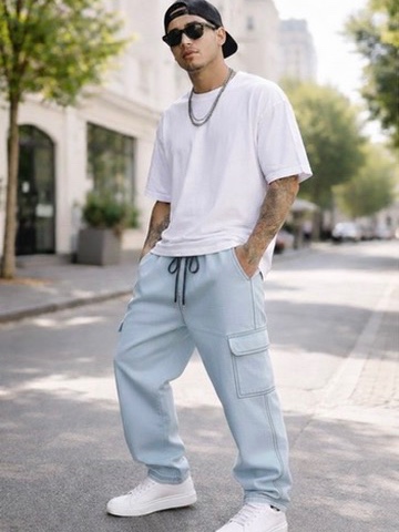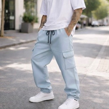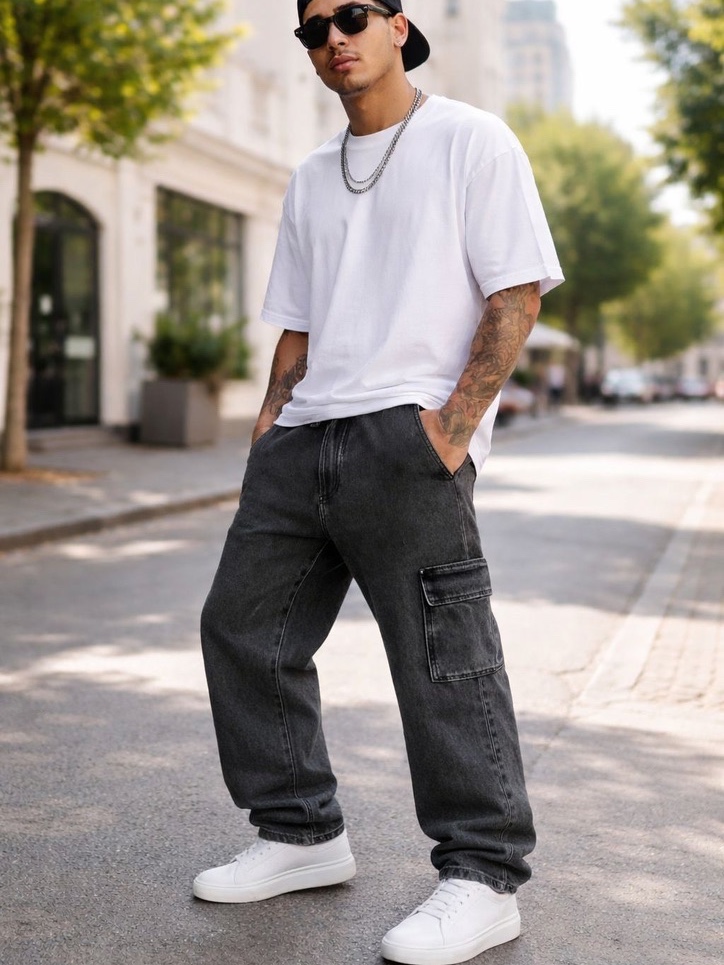 Calça Cargo Masculina Grafite Preta Azul Larga Sarja Jeans Bolsos Laterais