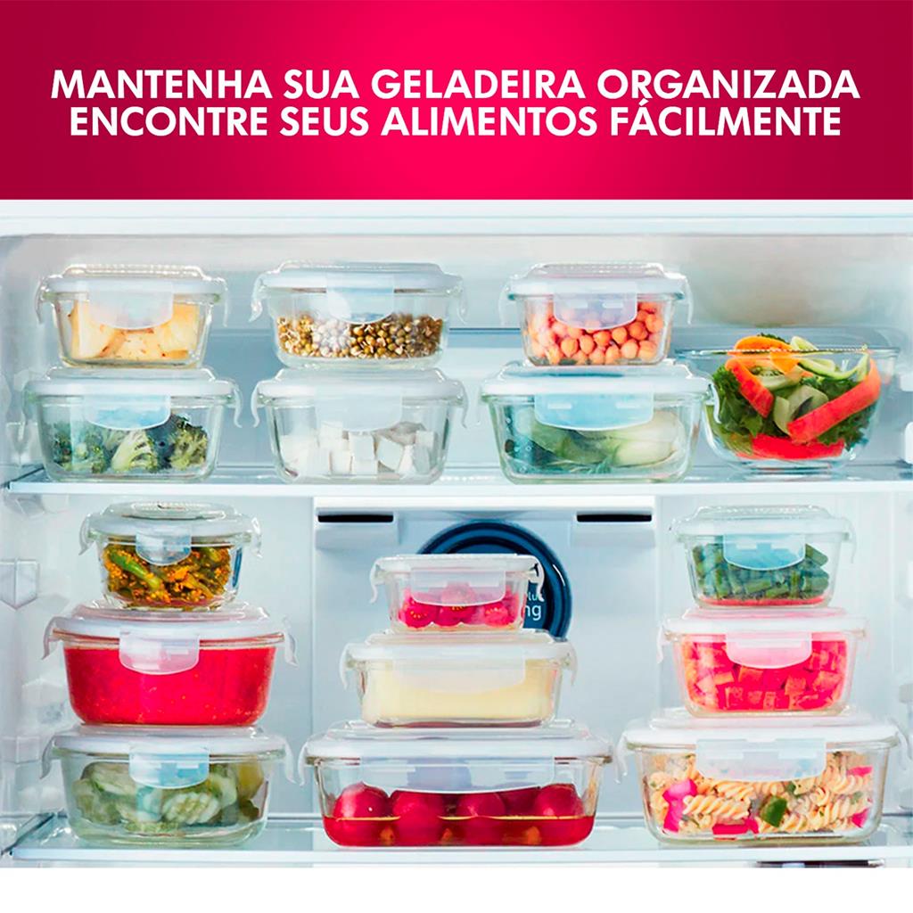 Pote De Vidro Hermético 640 Ml Retangular BPA Free Tampa Plástica Armazenar E Conservar - Art House